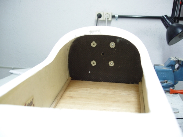 El sistema de sujeción de las alas con un tornillo atravesando la bayoneta no me convencía, así que decidí cambiarlo por un tornillo que sujete el ala desde el interior del fuselaje. A tal efecto, la primera tarea fué reforzar con carbono las costillas de raiz del ala y ya de paso, las del estabilizador también, que será desmontable (si no, no me cabe en el coche)