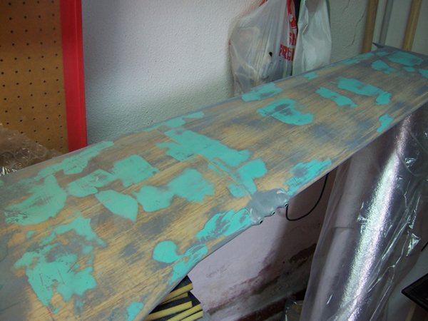 karman cubierto con listones, lijado y con la pasta pluma