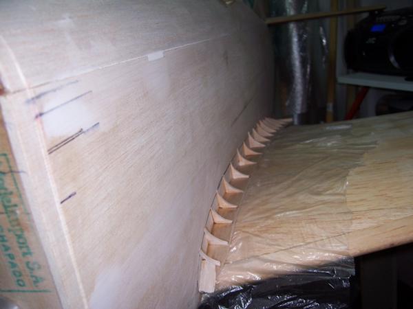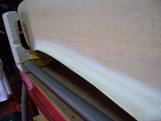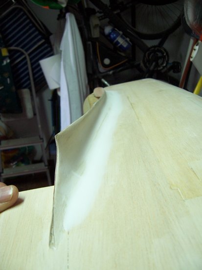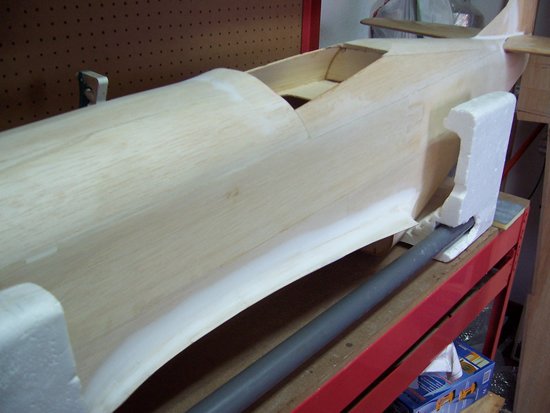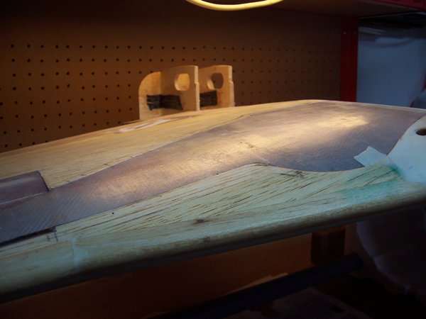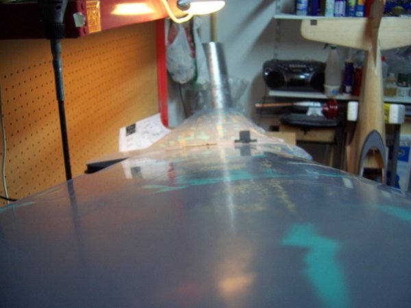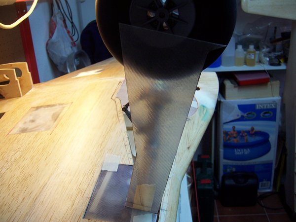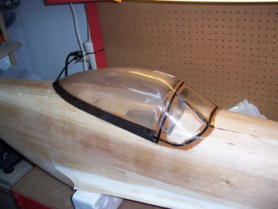 Bueno, otro empujón mas, he terminado los karmans como se ven en las fotos, a base de una estructura hecha con triangulos de contrachapado de 3 mm lijados dandoles la forma y recubriendolos de listones de balsa, con un poco de pasta`pluma, Por fin he recubierto el fuse con fibra, laminándolo y un pase de lija para dejarlo listo para la imprimación. Pero antres de eso tenía que terminar el tema de la cabina, la idea de Victor no me convencia mucho, así que lo he modificado, a ver que tal me sale. Lucio que es un artista de los plásticos es el artifice de la estructura del marco de la cabina. Mañana lo recortaré en condiciones, lo terminaré y comenzaré a imprimar. eso mañana. Os pongo fotos del proceso. Se admiten comentarios criticas y sugerencias, así aprendemos todos. Saludos al foro.