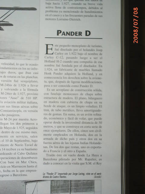 hola juan , esa foto ya se vio en el link a igual que las de javier .pues yo ya encontre todo lo que habia y lo puse en la pagina .lo que no sabiamos es lo que a encontrado javier ,y es los datos del avion real .