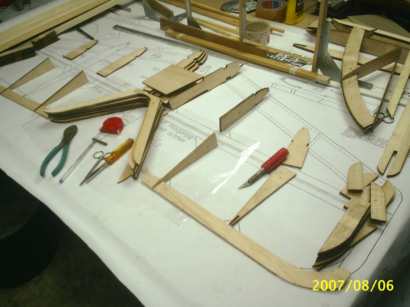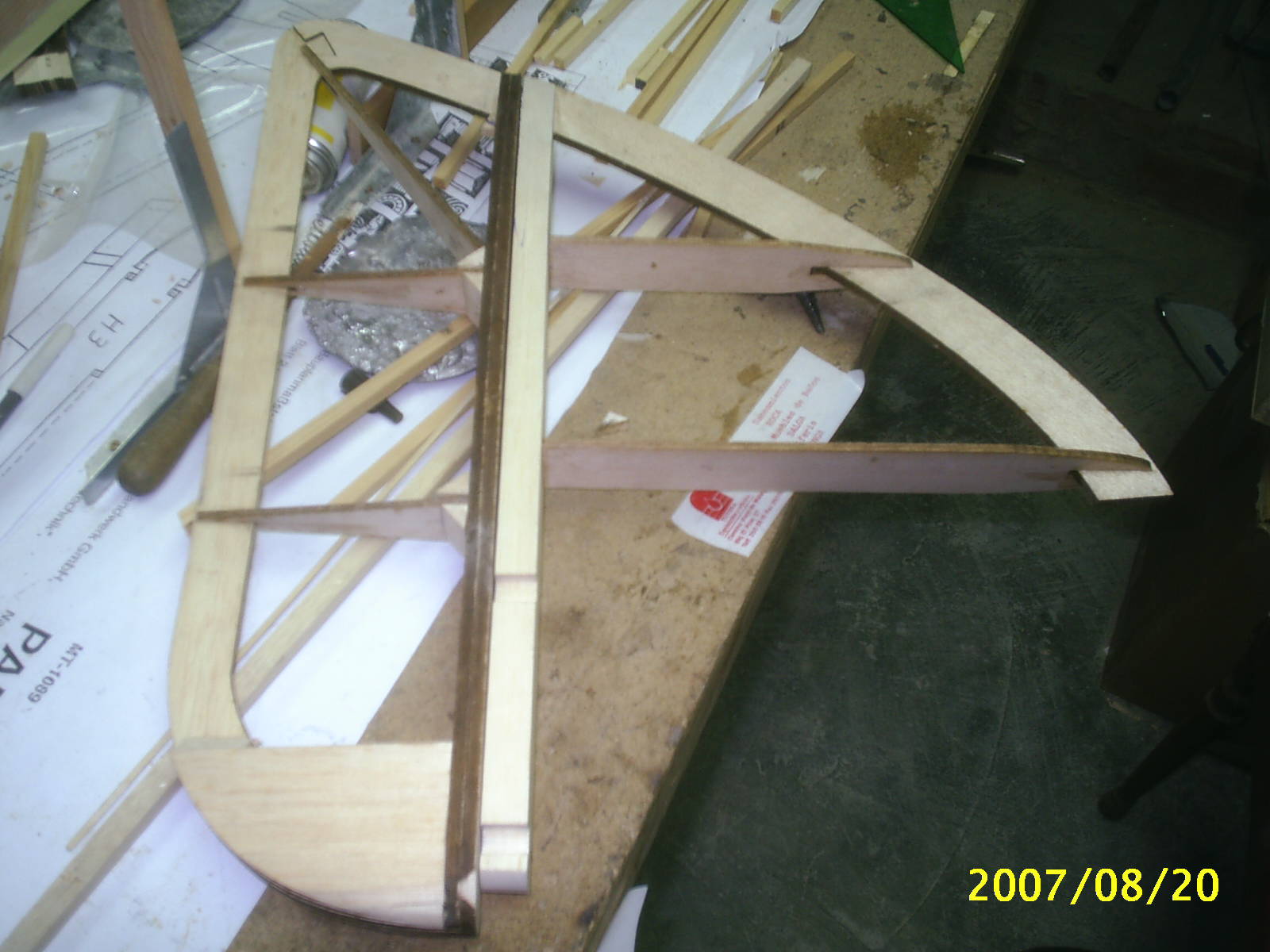 hoy e teminado los timones de enchaparlos.digo enchapado desde el borde de ataque asta los largueros y quedan super fuerte por las pocas costillas que tienen.