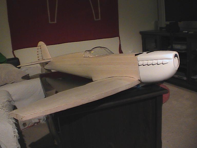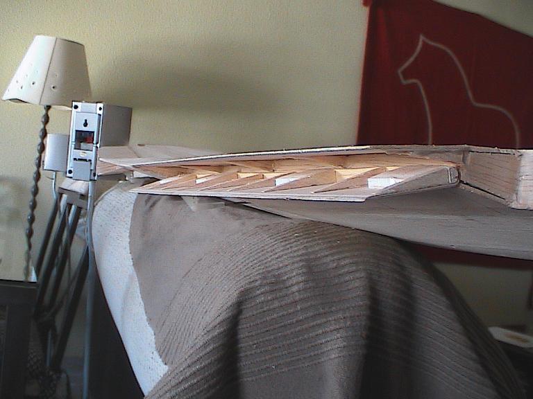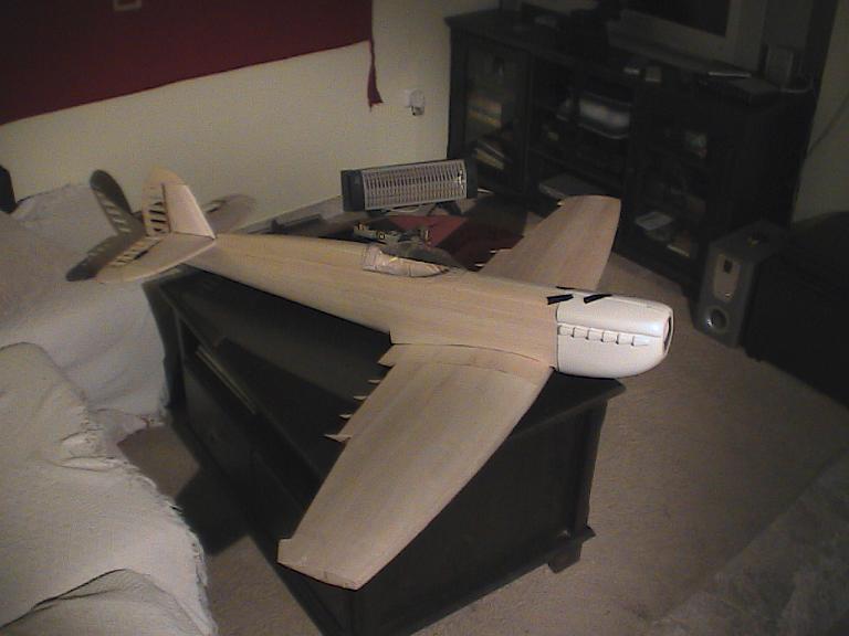 Todavia no, lo que si he enchapado ya completamente es el fuselaje. Me ha costado mucho la seccion de abajo, yo aconsejaria en vez de pegar las dos laminas de balsa y luego enchapar el lado, pegaria un lamina y luego el trozo a rematar porque al intentar revirar la madera termina no ajustando bien o partiendose. Me estais convenciendo con lo de dejar a un lado lo de la fibra por el peso asi que analizare las distintas posibilidades de pintura. Mañana intentare enchapar el ala, ya os contare