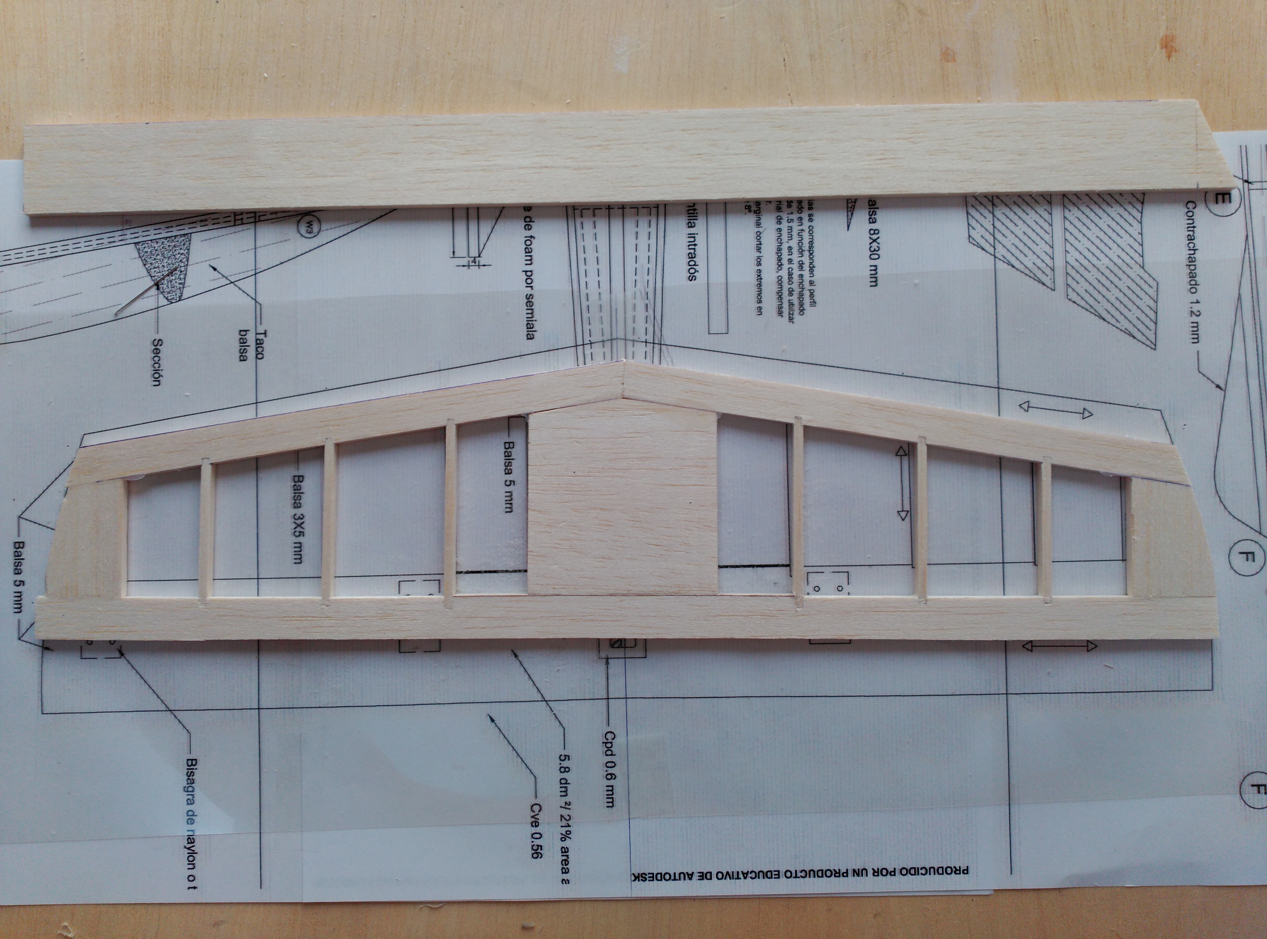 Bueno pues ya hemos terminado el ala (a falta de unos refuerzos de contrachapado) y ahora nos damos cuenta que no tenemos ni una foto de ella, que desastre que somos.
