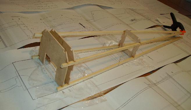 He reducido la longitud de la carena de fibra a lo imprescindible alargando la construcción en balsa para tener mejor espacio y acceso a la batería.