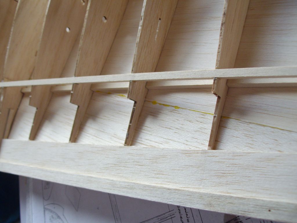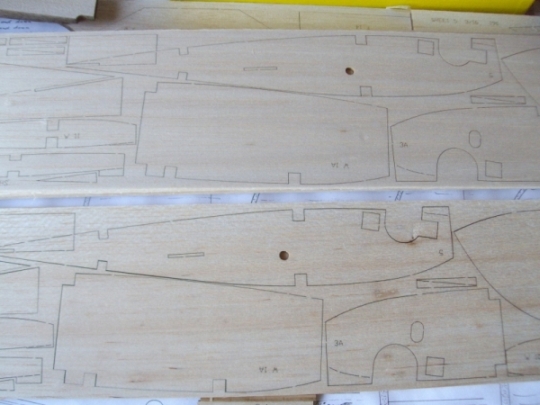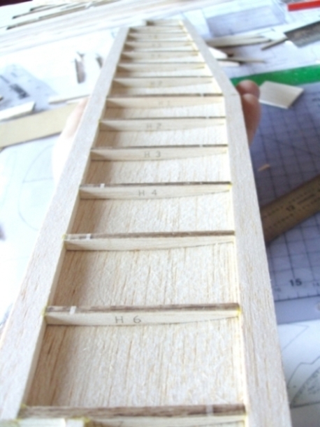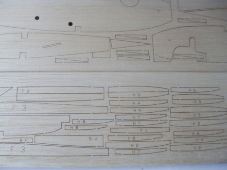 Aunque he construido unos cuantos kits he de decir que este no es nada fácil, las piezas cortadas por laser sí vienen numeradas pero en el plano no hay numeración ninguna a excepción de las costillas de las alas y la cola; o sea que hay que estar bien seguro donde va la pieza antes de pegarla.