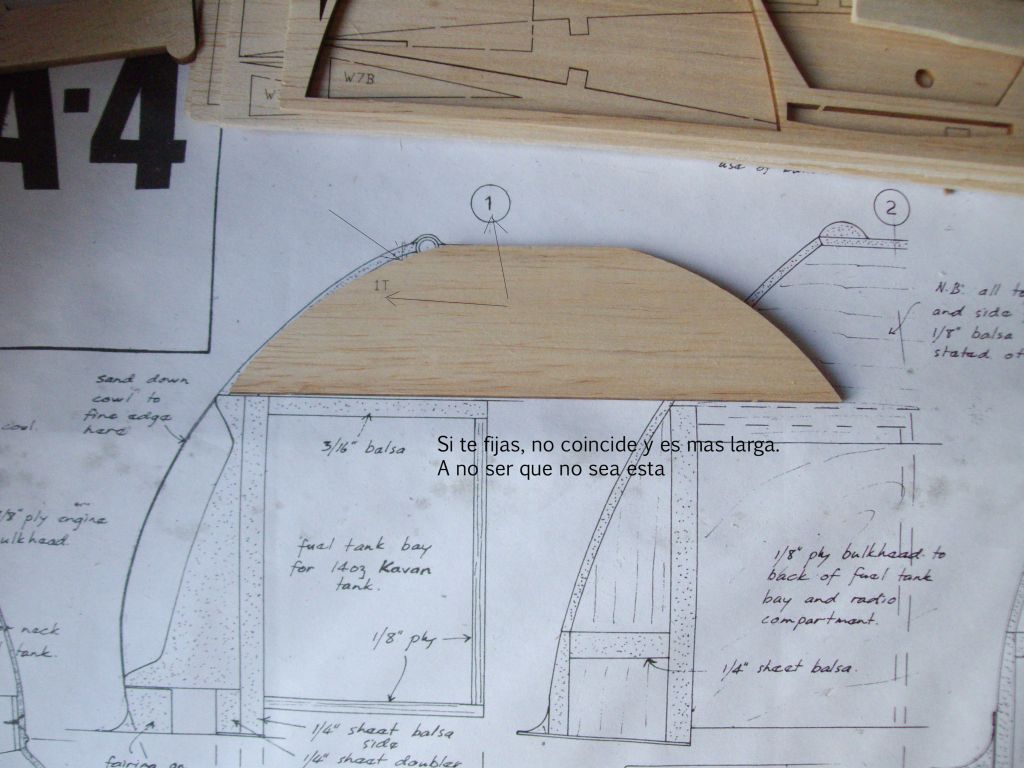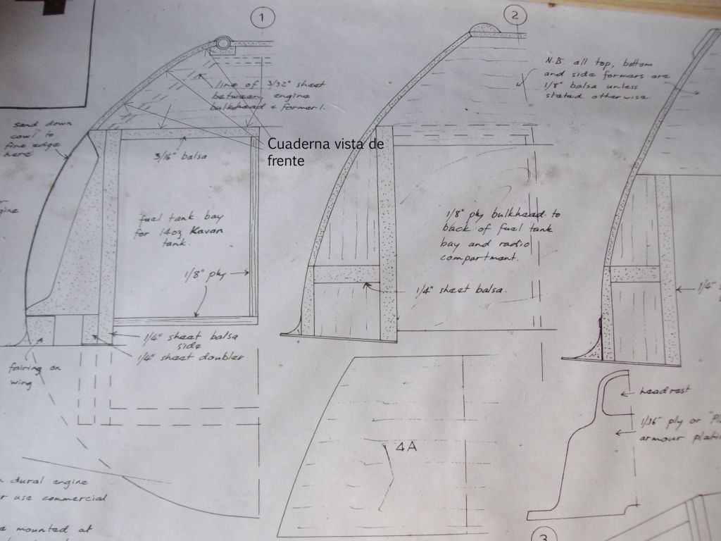 El avión tiene 153 cm de envergadura y segun el plano es para un motor .60 (en el plano viene con un Merco .61), aunque seguramente le meteré un OS 90 de cuatro tiempos. Debido al corto momento de morro que tiene, necesitará bastante peso en el morro, por eso el cuatro tiempos; si necesita más, un 20 de gasolina.