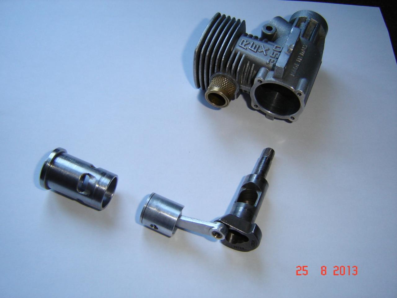 Actualmente he conseguido fabricárme mis propios grupos motor (camisas en acero, pistones en AA-2011 y bielas en AA-7075). En principio empecé a fabricar las camisas de bronce y de latón, pero al no tener el baño de cromo interior, se desgastaban muy rápido. Ahora las hago de acero que sí tiene buen aguante al desgaste, pero en contrapartida tiene el problema del oxído originado por el nitrometano (actualmente ruedo con el 16%). Las zonas donde se oxída son: los 0,6 mm que quedan de cámara de compresión y a la salida del transfer de escape. No sé sí sería bueno rodar sín nitro y sí perdería mucho en prestaciones.