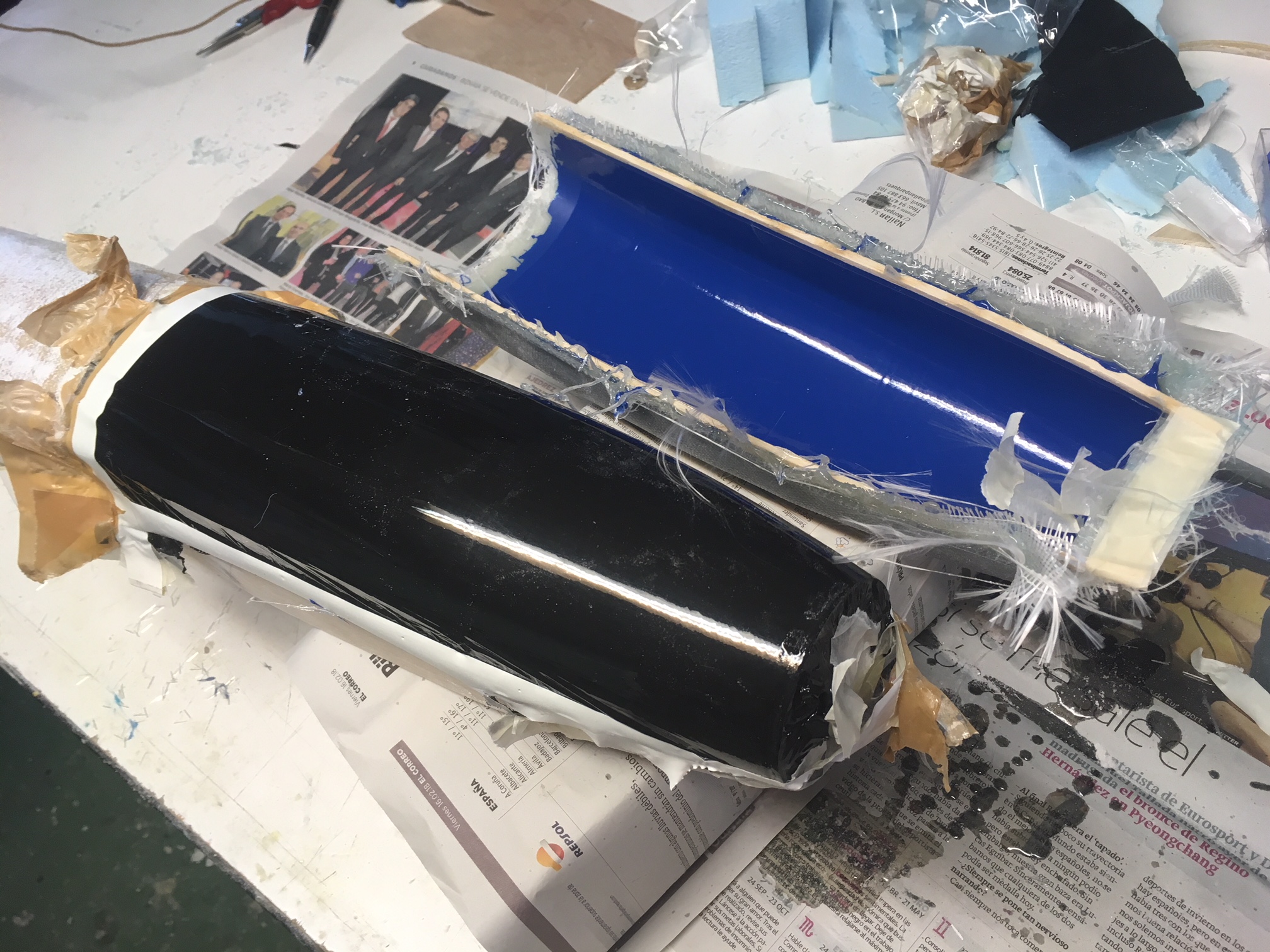 Y por el otro lado solo fisuras que rellené con resina de laminar + cargas, y un tejido fino encima para sellar y reforzar la junta