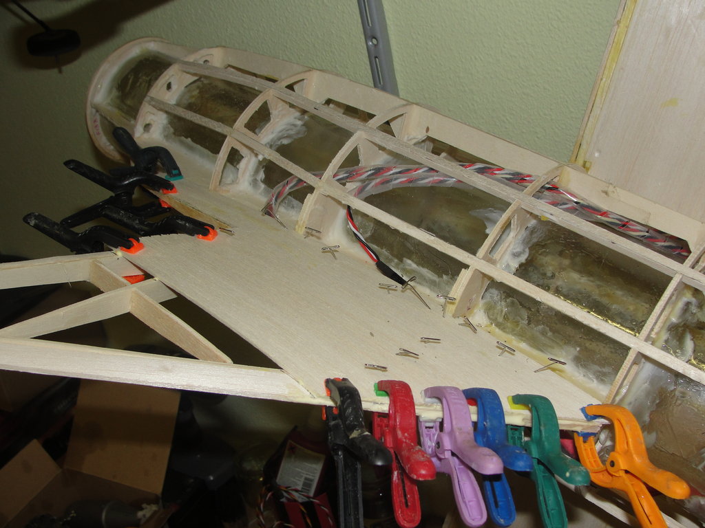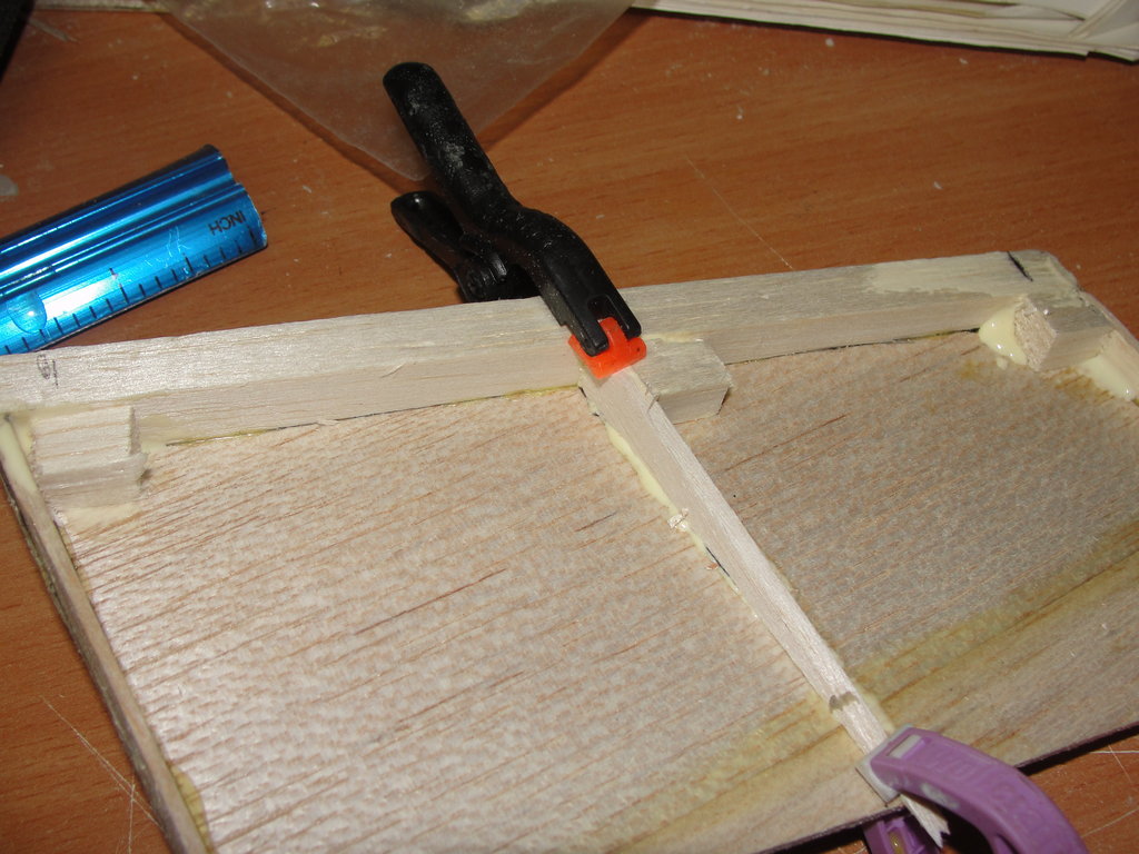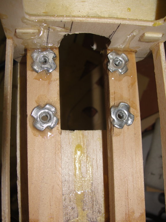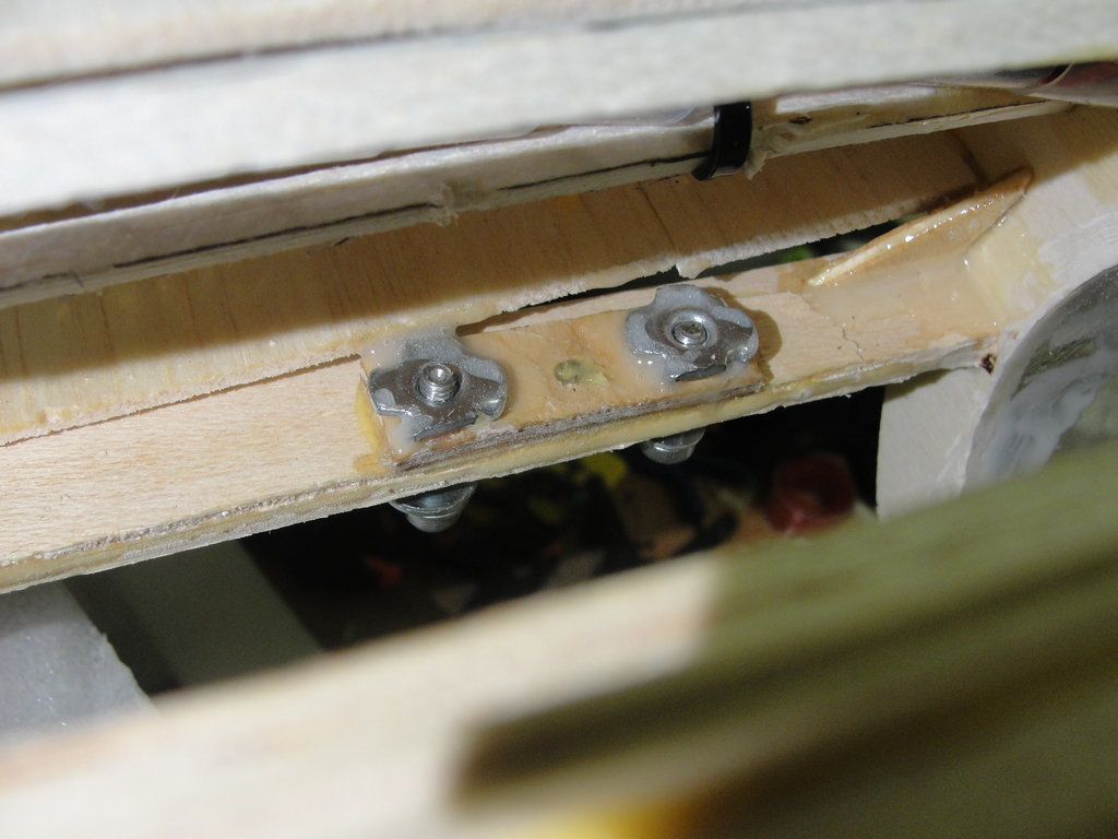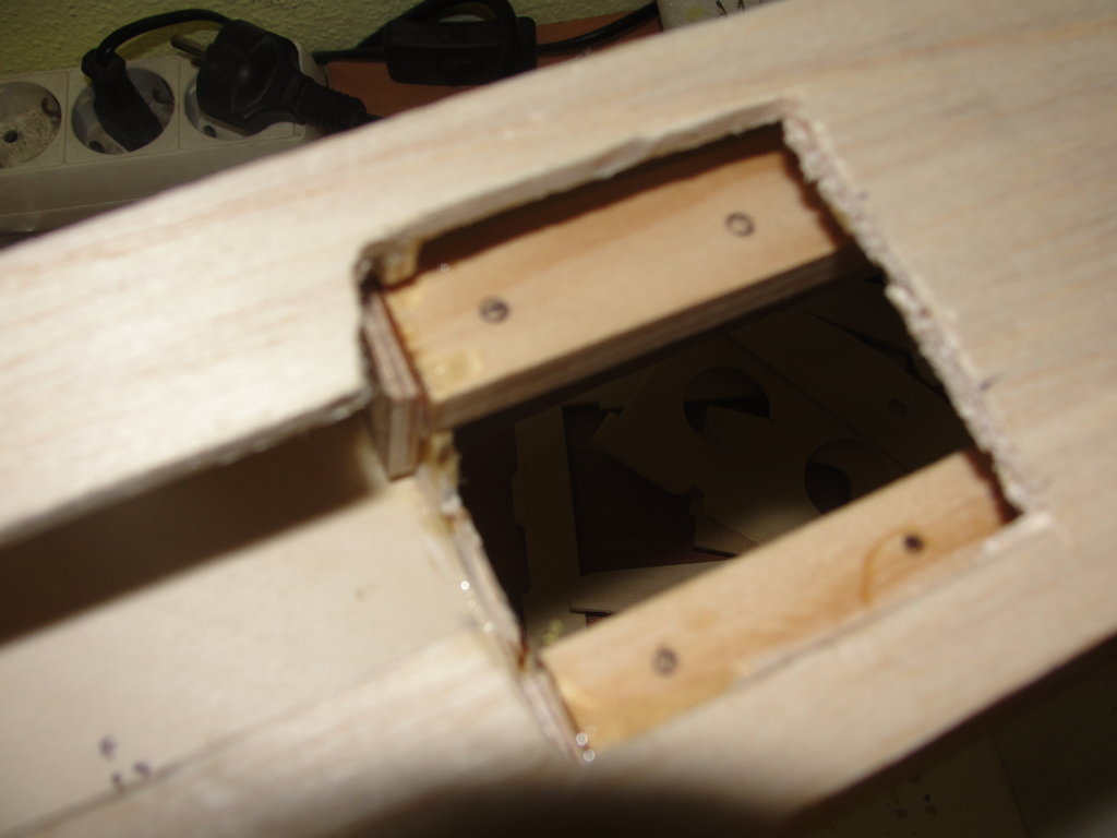 Para ello coloco un refuerzo debajo de cada nervio de contrachapado finlandes de 3mm, y despues uso arañas de metrica 4, con un tornillo y una arandela voy apretando hasta que la araña queda perfectamente encajada y despues doy epoxy para evitar que se muevan en el futuro.