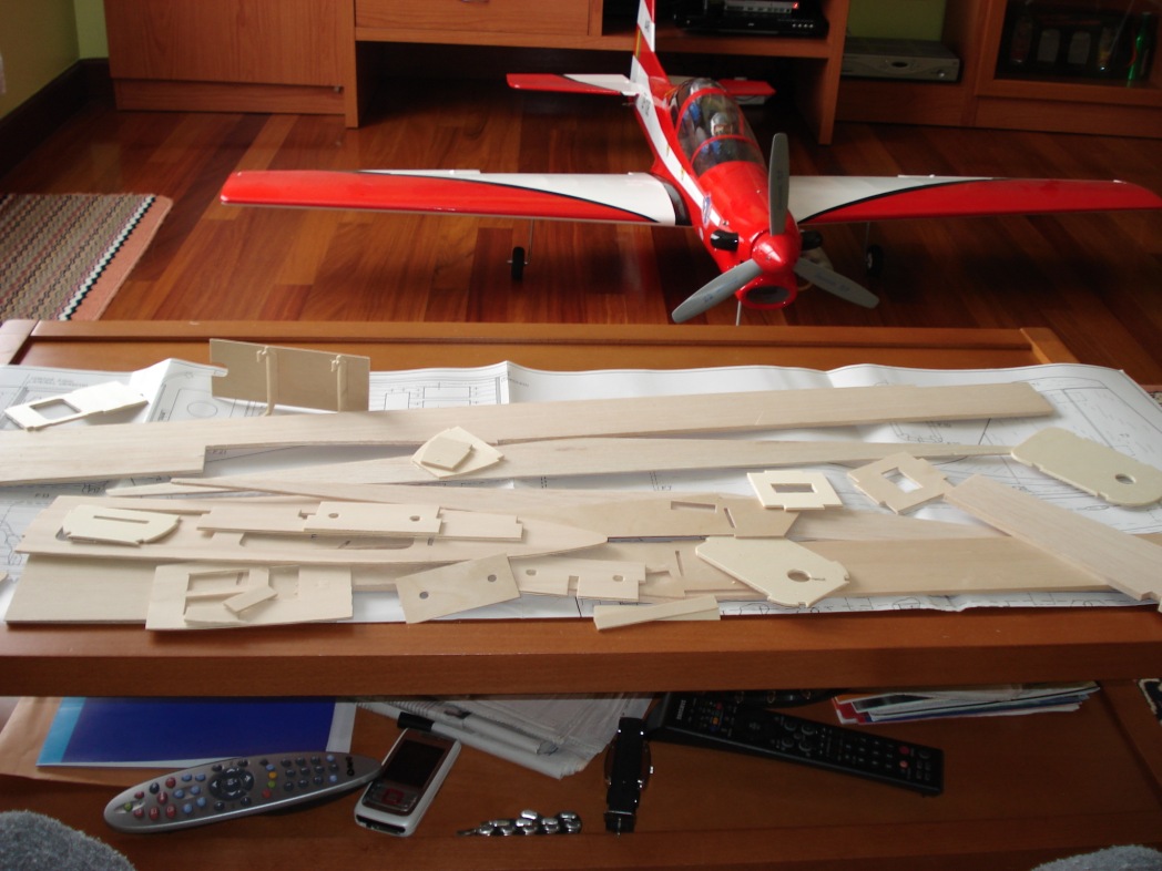 Yo me monte 3 o 4 de la version anterior ( ala en foam y ya chapada en balsa) y uno, para matar el gusanillo, de esta ultima. Yo no se si a mi kit olvidaron meterle dentro las instrucciones pero ahi falta algo. El parto de la pieza para sujetar el deposito te lo puedes ahorrar y le pones debajo un taco de foam y va que se mata. El estabilizador en estructura, otra novedad del kit, si lo haces en balsa ligera de 6 mm, viene casi a pesar lo mismo y simplificas. En el plano se echa en falta una vista superior del fuselaje. En las costillas A2 y A4 pon un buen refuerzo de ctp de 3 mm para no arrancar el liston de haya del tren. Volar vuela, pero es verdad que en caso de parada del motor te lo tienes que llevar por derecho si no tienes altura de sobra para un viraje viento en cola de esos de un kilometro de radio.Planear planea, asi que animo y suerte