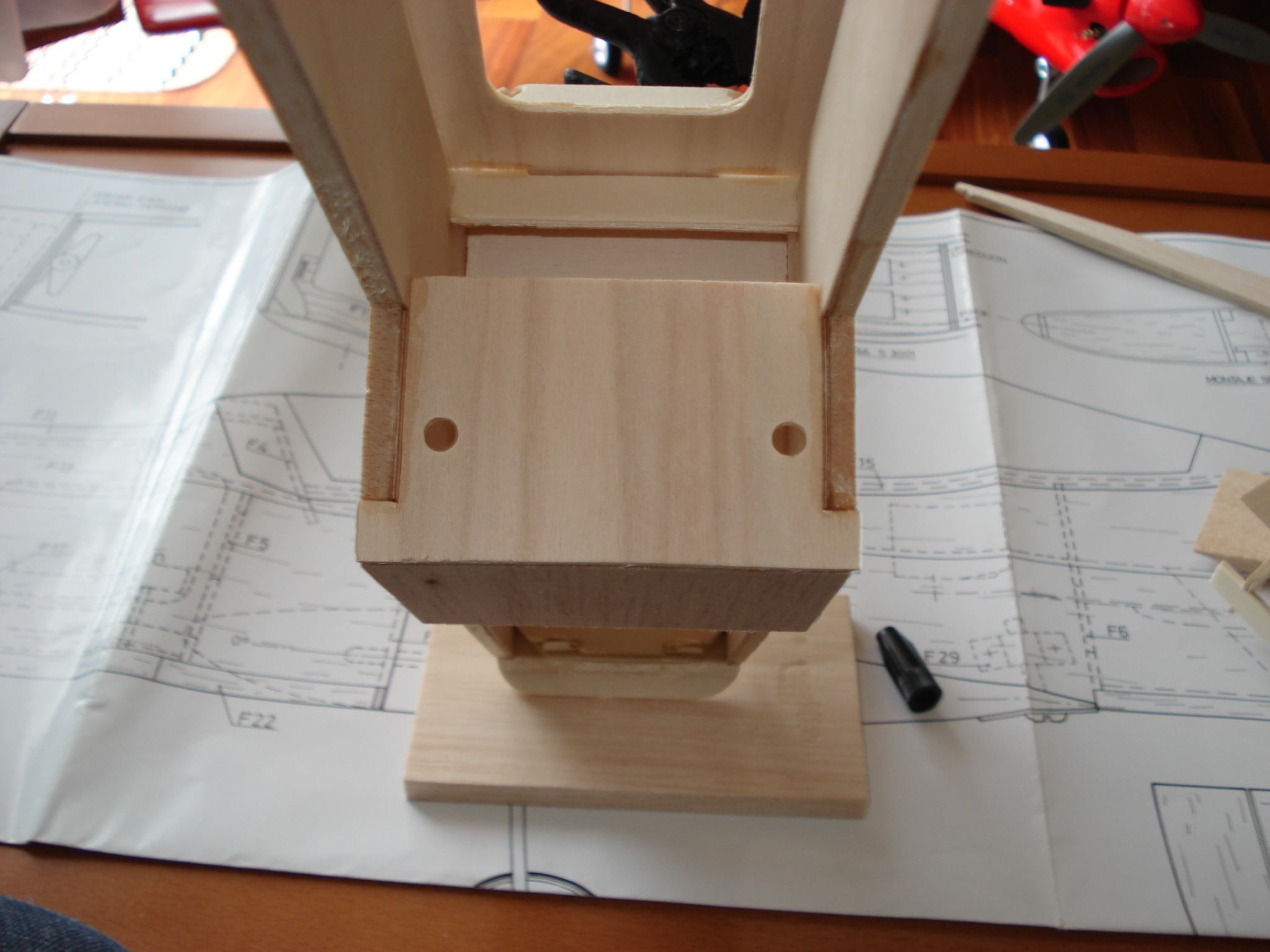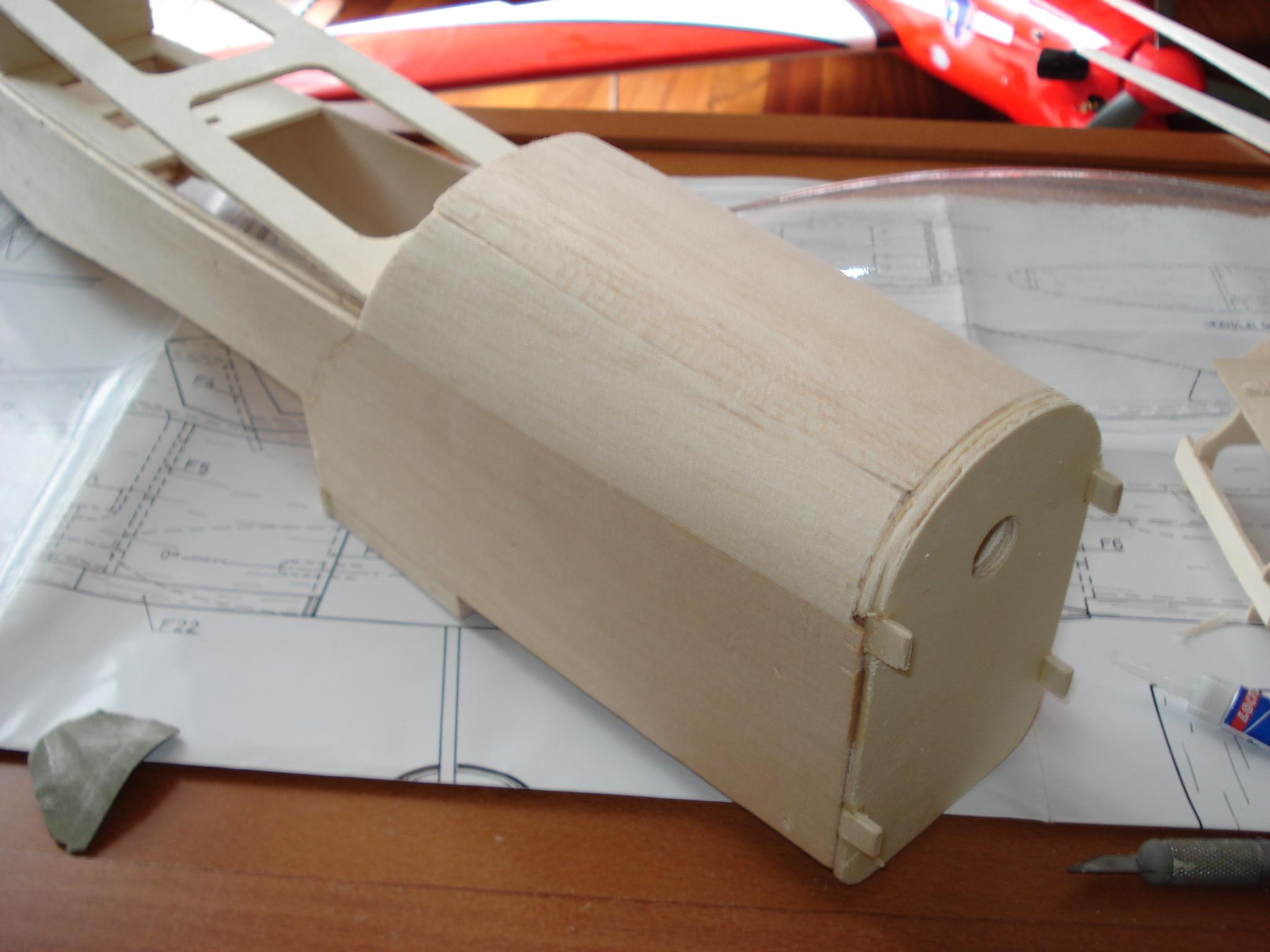 en la tapa de abajo y detras del fuse e kambiado el tako de maderaza por lamina de balsa........no servira de mucho.........