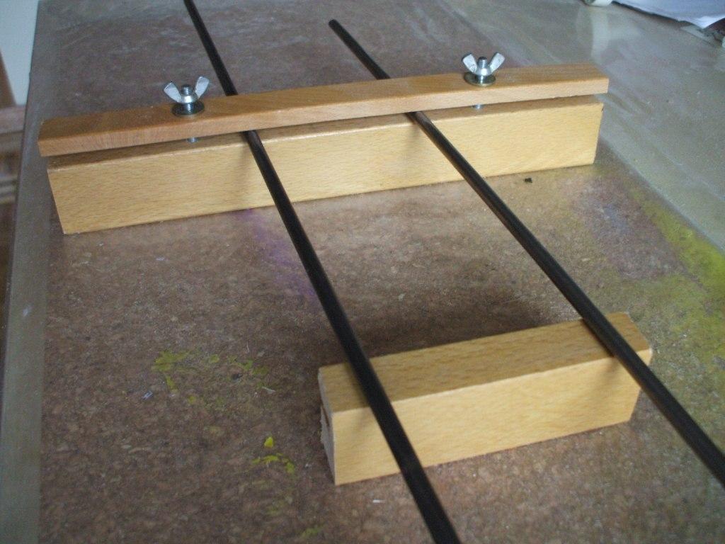 Ya no lo vas a necesitar pero pongo aquí para otros fotos de un soporte simple que asegura que las alas con cuerda variable salen rectas.