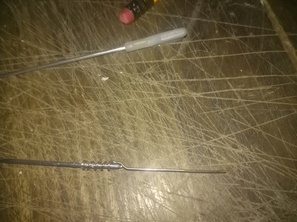 Estas son las varillas de mando que estoy usando, son "hilos" de aluminio de un cable eléctrico. Es increible lo poco que pesan, y el diametro es aproximadamente 2mm, Así que entran perfectamente en las cositas plasticas esas que no se como se llaman... perdonen la ignorancia :? .