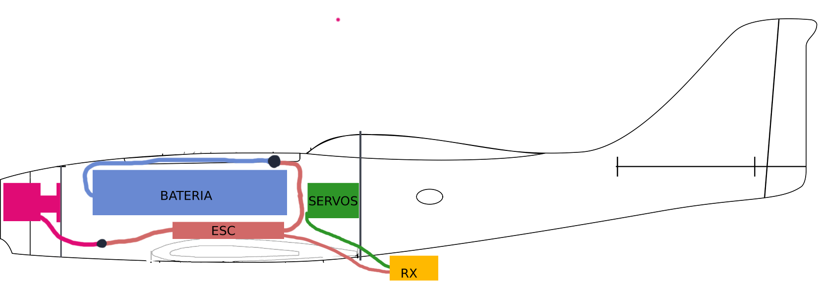 Sobre el CG. el variador me viene quedando sobre las alas, justo debajo de la bateria, por lo que el peso se esta acumulando sobre las alas. Los servos (y es lo unico que me saca del modelo original) los voy a tener que instalar a los lados del fuselaje, en el exterior, al igual que en tu modelo del racer, pq los tengo contados, de echo, tengo solo 2, que seran los de direccion y profundidad. Los de las alas tengo que quitarselos al cessna :( .