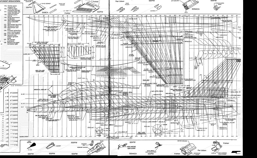hola giuseppe, ante todo gracias. yo soy novato en consrtuccion de maquetas la ultima que construi fue un f14 de plastico escala 1:48 y fue hace tiempo. las tecnicas que utlizo las recopilo de los foros. pues mira para fabricar las secciones del fuselaje me guie principalmente de solo dos dibujos que adjunto. te sera un poco dificil sacar las secciones de tan solo tres vistas. necesitaras una buena documnetacion fotografica pero las secciones serian aproximadas. encontre esto espero te sirva:
