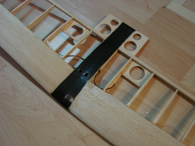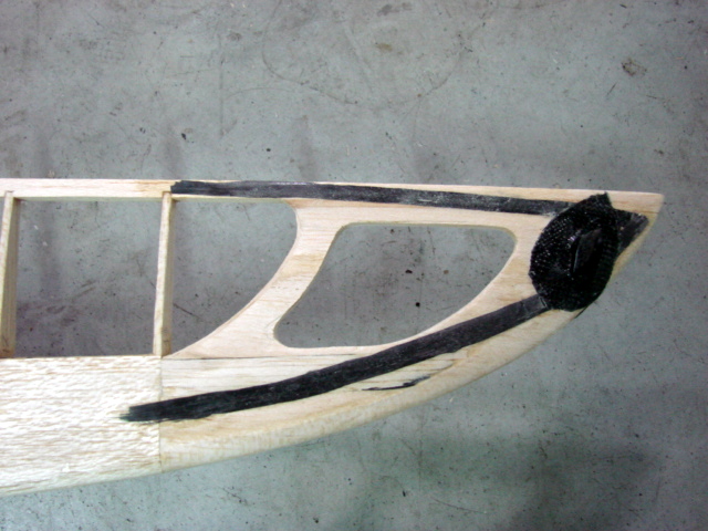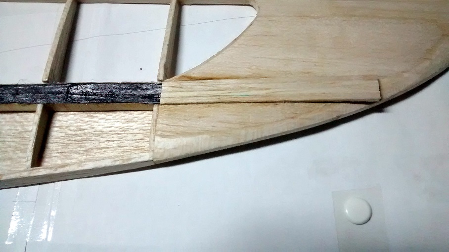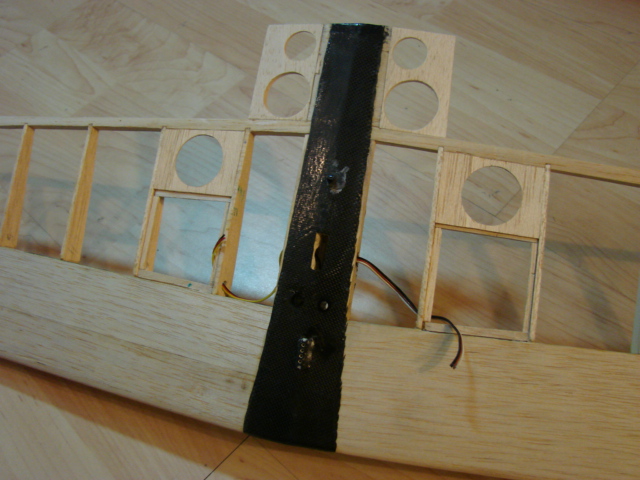 , le añadí mechas y tela de fibra de carbono en ambos lados y lo deje secar en el tornillo de mesa bien apretaito y una vez seco lo lije y quedo lo que se ve, luego hice muy justito su alojamiento en el ala y lo pegue con ciano....