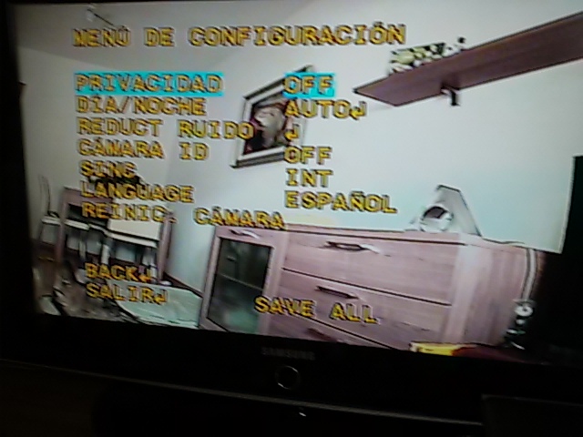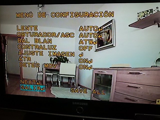 Este es el menú de la cámara. (Y este osd, si que llega bien integrado en la imagen de video, emitida y recibida por emisor y receptor de video)