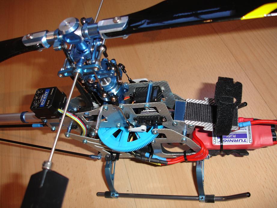 En cuanto alcé el vuelo lo primero que me pasaba es que iba hacia atrás, y el caso es que tratando de ajustar el centro de gravedad de heli me obligaba a poner la batería muy en la punta, como si tuviera poco mucho peso atrás y aun asi tuve que poner el trim de elev casi a tope hacia delante.