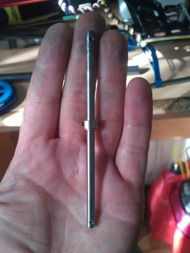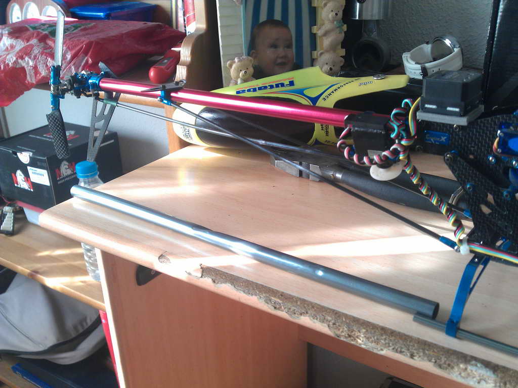 Por fin me animé y gracias a un compañero del club, me lié la manta a la cabeza y me puse manos a la obra. Cambié el tubo de la cola por uno nuevo y desmonte el eje del rotor principal para comprobar su estado (perfectamente recto).