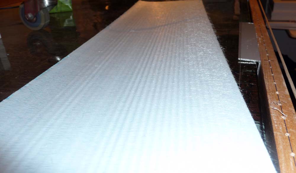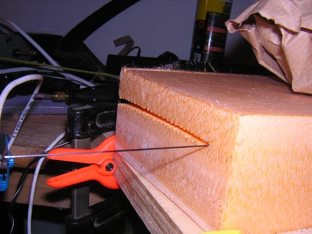 Estoy cortando unos núcleos de porex azul con hilo de nicrom de 0,5 y una máquina de poleas. El caso es que la superficie queda ondulada, como podéis ver en las fotos. Las zonas en torno al borde de ataque y de fuga quedan casi bien, pero el centro queda muy ondulado. El hilo corre bien, no se atasca, va despacio, el porex no se quema...