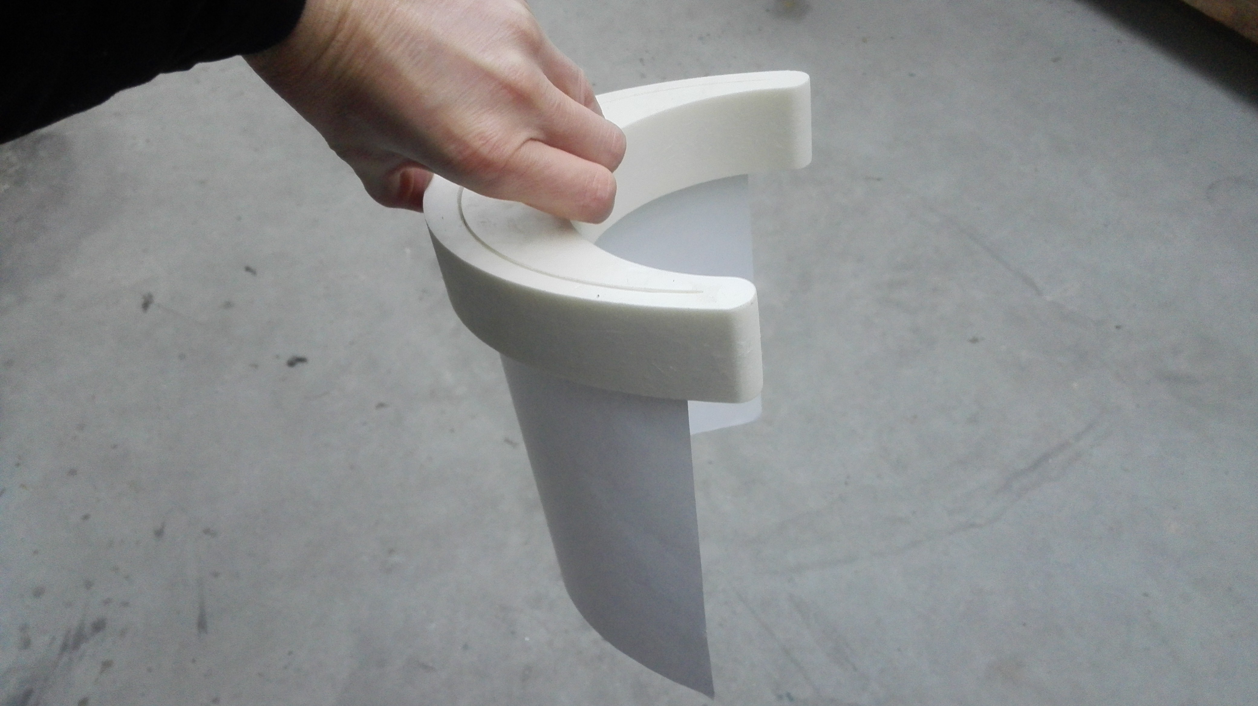 Actualmente se están utilizando impresoras 3D para fabricar monturas de protección facial. El caso es que también se pueden realizar con hilo caliente en poliestireno expandido o extrusionado. Sólo queda instalar dos gomas elásticas y una hoja de acetato de tamaño DIN A4 fijada con alfileres, por ejemplo. Se pueden reutilizar si se desinfectan con alcohol o disolución de lejía, ya que no ataca a los materiales.