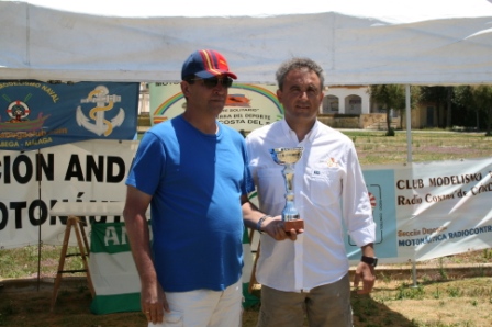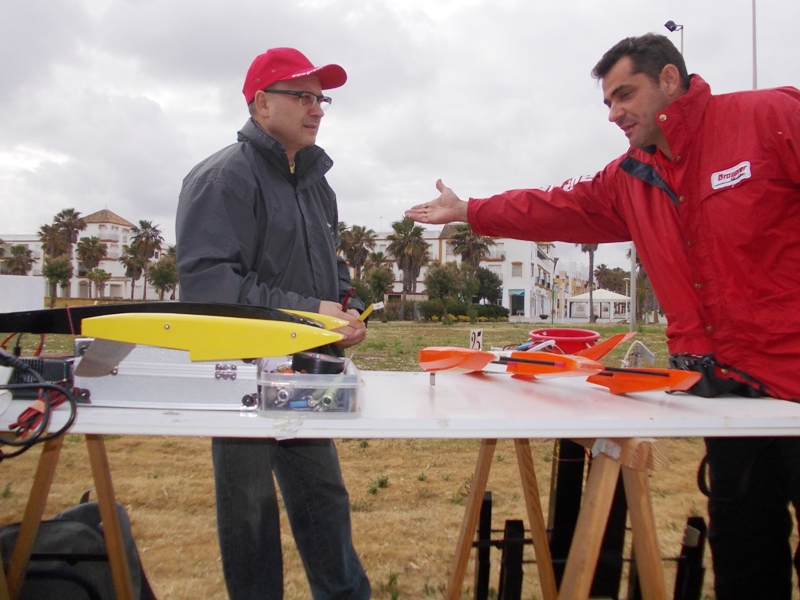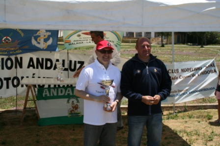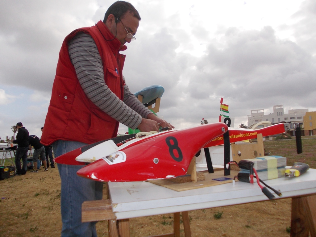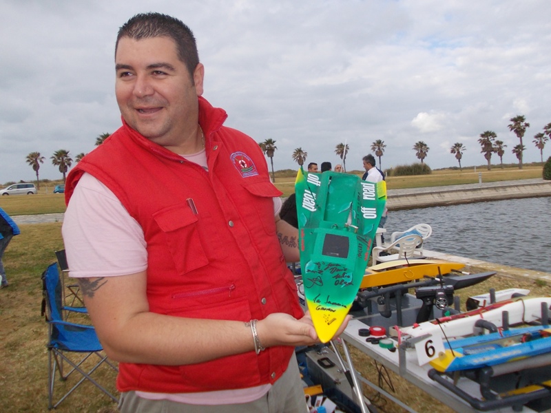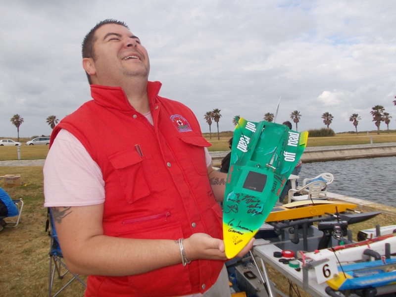 Gracias por el recibimiento que he tenido en mi vuelta como piloto. Gracias por la ayuda de los que han contribuido en que pudiera ir reparando los desperfectos que ha ido surgiendo en el transcurso del 2ª y 3ª manga: Rotura de tubo de refrigeración con inundación y servo averiado. Rotura de hélice por alcance de otra embarcación, y sólo tenía una de esa medida. Pérdida de tornillo de 3mm que apretaba eje de timón por estar la rosca pasada con realización de nueva rosca 4mm y listo para correr el domingo. Y encima me fue muy bien en la manga del domingo.