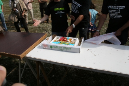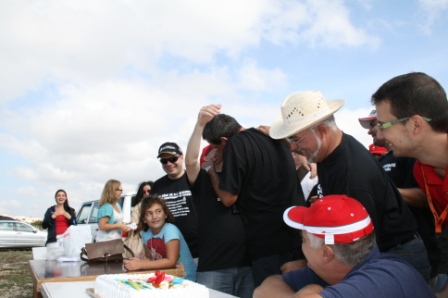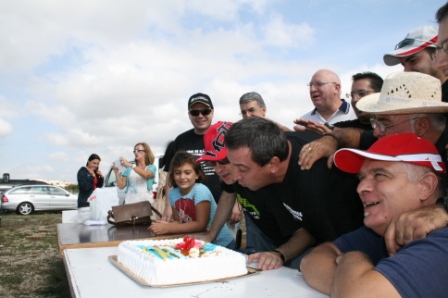 Y para celebrar el 20 aniversario tomamos una tarta decorada especialmente para la ocasión con un patín miniatura fabricado por el amigo Alex.Las velas las soplaron los pilotos mas veteranos en campeonatos corridos. Tanto Jose Manuel Enriquez como Jose Antonio Ballester llevan corridos 20 campeonatos.