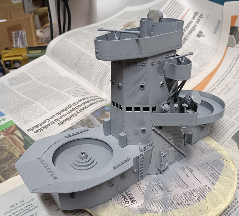 Ya he empezado a montar todas las piezas que he impreso, alguna he tenido que repetir, pero en general han salido muy bien, para eliminar las líneas de impresión, lijo las piezas con lija fina al agua para que el plástico no se caliente y se estropee con la fricción...