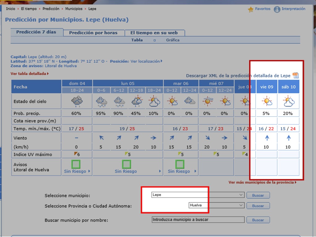 Según la AEMet: Según RTVE (Andalucía): Según la web tiempo.com Según la web tutiempo.net: Como estamos a una semana del evento, iré actualizando la información, vale?