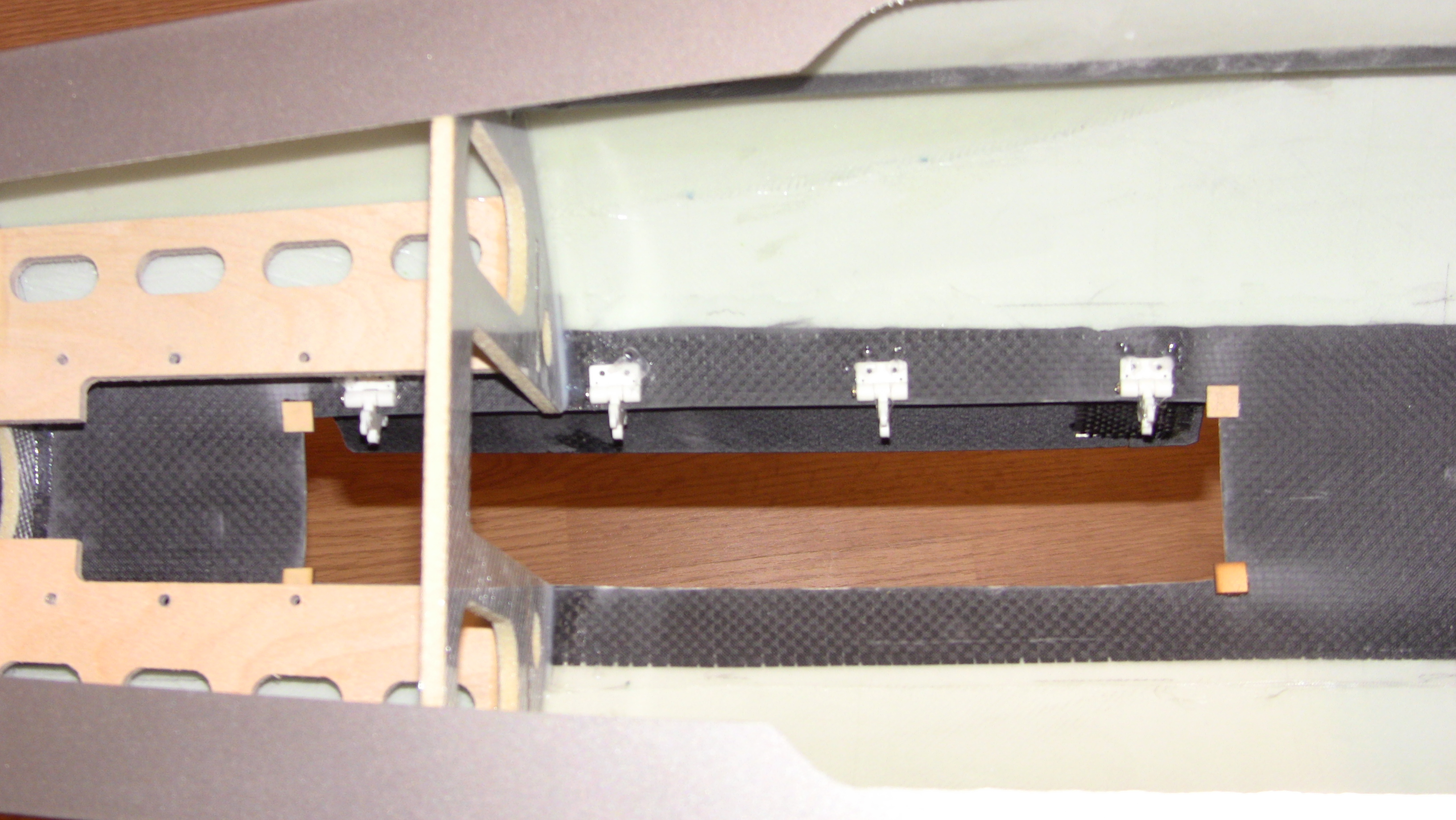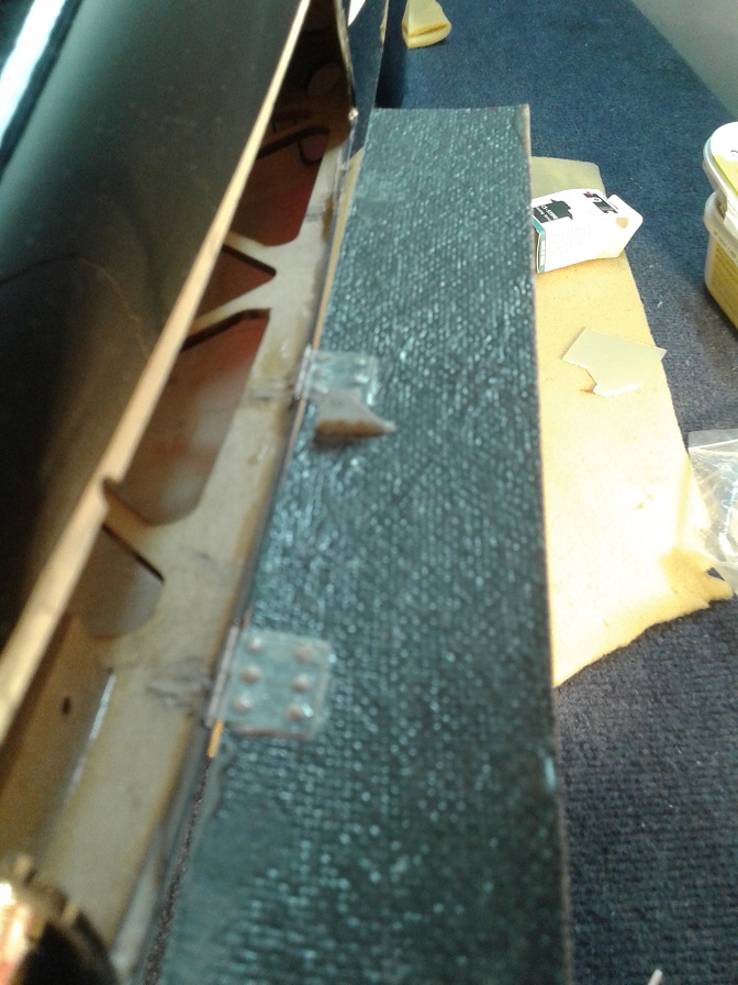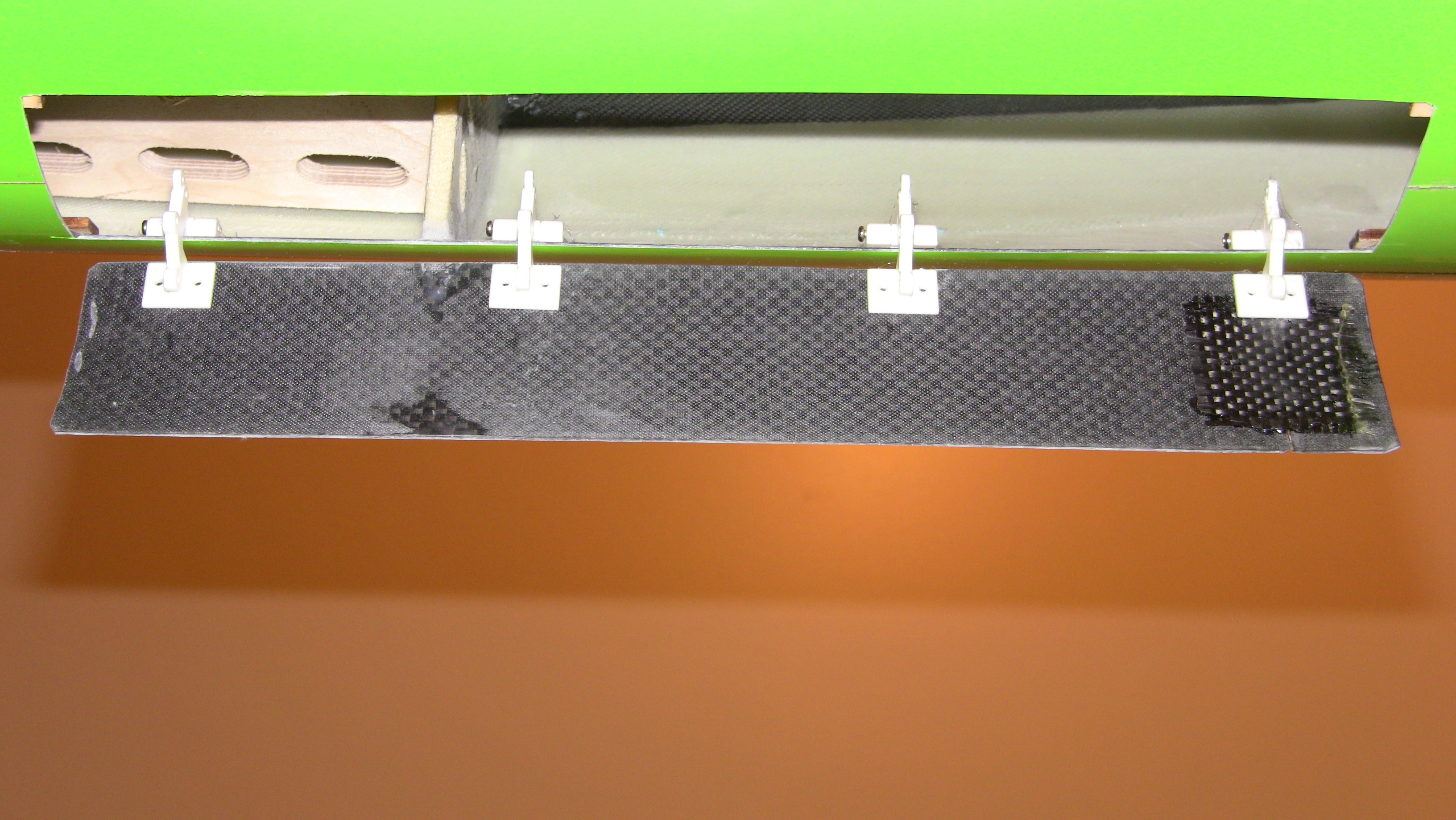 Dependiendo de la maña de cada persona y de si la superficie donde ira la compuerta es totalmente recta o algo curvada. Dependiendo tendrás que poner unas bisagras más a dentro y otras más afuera, para que cuando abra la compuerta no roce con el fuselaje.