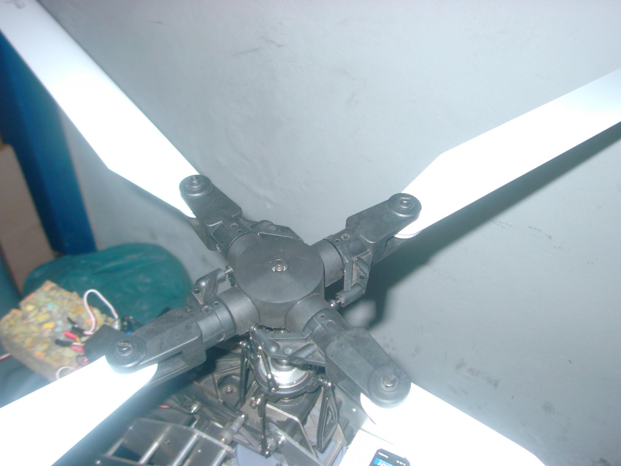 He analizado lo de este hombre y hay una cosa clara que el rotor de Robbe que esta utlizando,esta diseñado para esta mecanica,( Robbe) que precisamente desplaza los movimientos del ciclico 45º mecanicamente ,los portadores de estas mecanicas lo pueden comprobar.