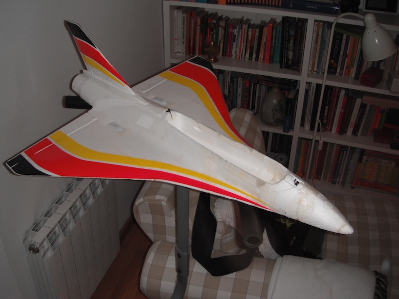 He rehecho el morro de una de mis turbinas electricas de porexpan (no elapor) con espuma de poliuretano. La estrellé casi de morro por culpa de una ráfaga de viento y se me aplastó la punta rompiendose. La he hervido y ha recuperado parcialmente su tamaño original pero aun asi el modelo mide 3 centrimetros y medio menos. He hecho un molde del morro actual y encima de este he usado espuma de poliuretano para añadir el material que falta para llegar a los 3,5 cm reales. Me pregunto una vez esté pegado el morro artesano si podré recubrir este material con oracover o algun tipo de material de protección para que no se vea la punta amarilla.