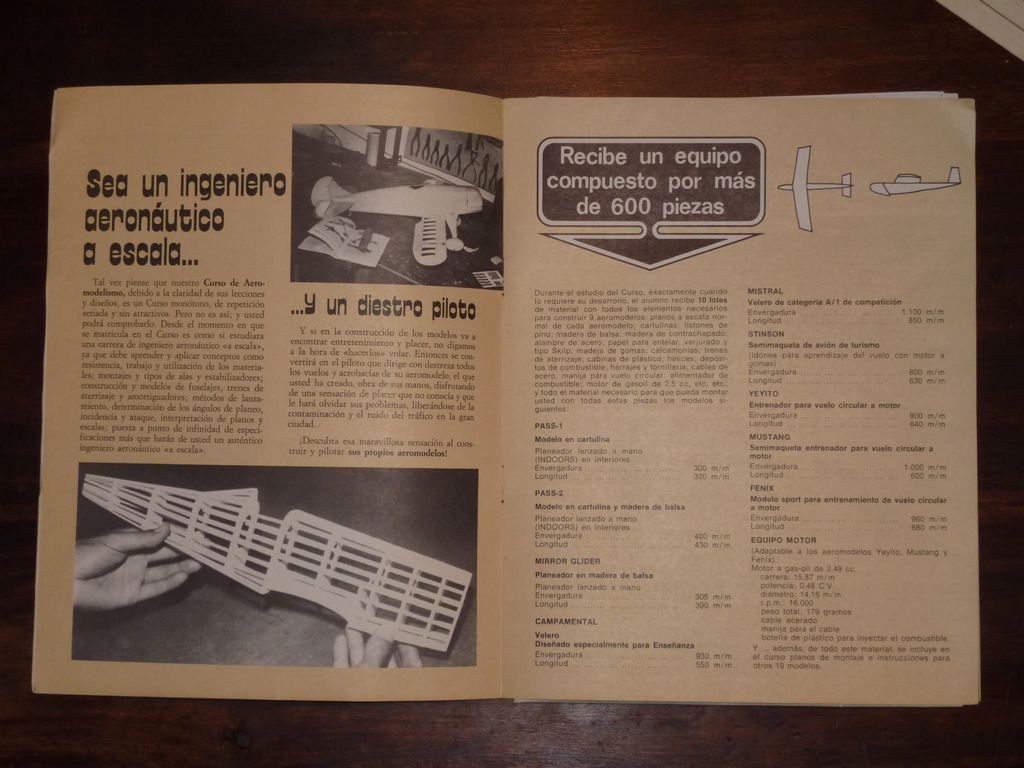 Es un cursillo muy curioso, del llamado "Instituto Americano". Al inscribirse al cursillo, mensualmente te iban enviando unos cuadernillos, y unos paquetes con los planos y kits de aviones para ir montando.