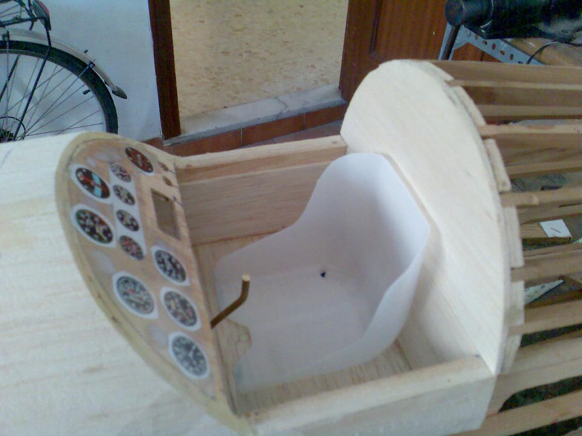 He estado haciendo algunos detalles menores, instalando cables y equipo eléctrico, he fabricado el bloque de porexpan para hacer la carena del motor (de éste no os puedo poner fotos porque se lo he dejado a un amigo que me va a fabricar la carena y se me olvidó hacerlas antes :oops: ) y también el puesto de mando, a falta de pintura y acabarlo.