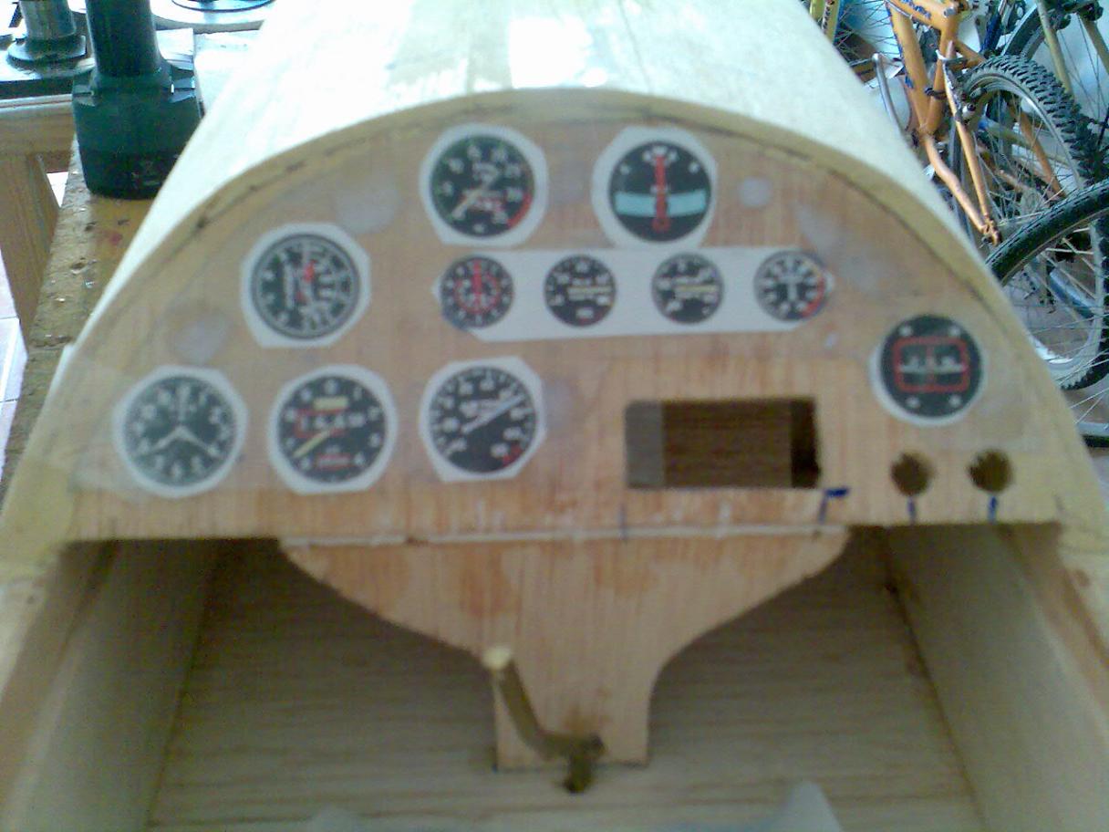 Hola de nuevo, retomo el hilo para compartir con vosotros algunas cosillas más que que he hecho al avión. :wink: He estado terminando el cuadro de mandos y el tren de aterrizaje :D . Las patas del tren son dos barras de duraluminio de 15 mm. de diámetro, sujetas a los actuadores mediante unas espigas de hierro de 8 mm. y los ejes de rueda son unos tornillos allen de 6 mm. roscados en la base de las patas. En principio parecen lo bastante resistentes pero ya veremos cuando, con mi habitual precisión :oops: , "pose" el avión en el suelo que ocurre.