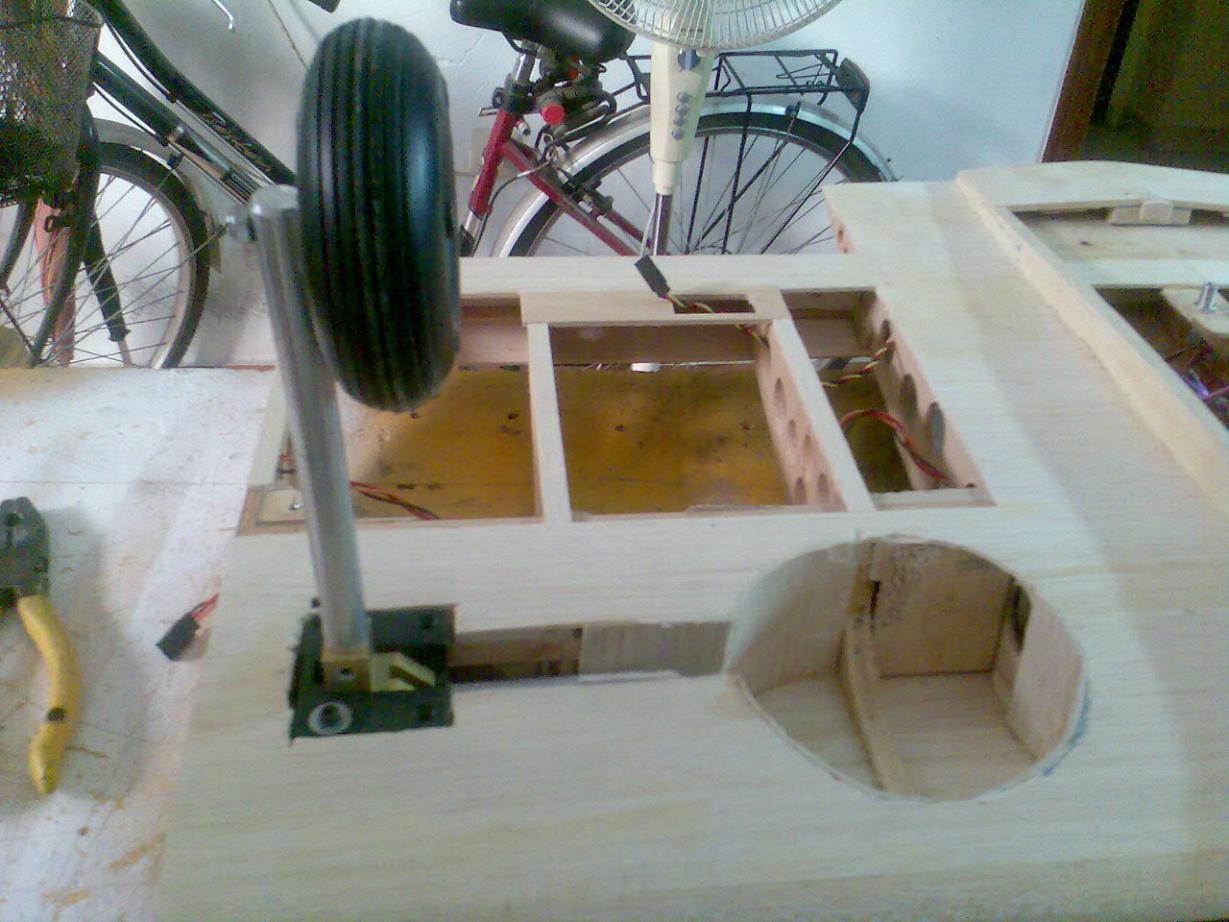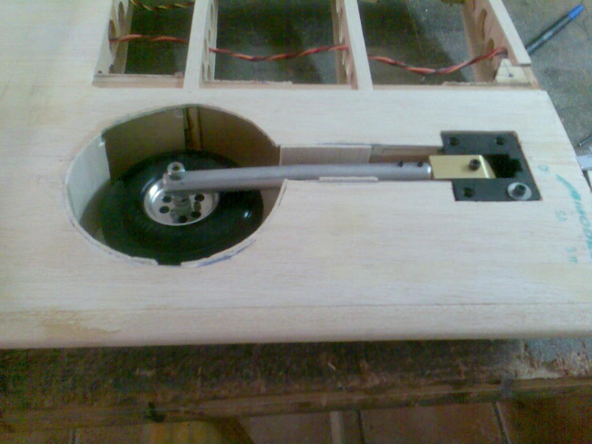 Por las fotos del tren de aterrizaje me da la sensación de que has colocado este un poco retrasado, por lo que aconsejaría que calzaras las sujeciones traseras del tren retractil para que al salir la pata se desplace hacia delante.