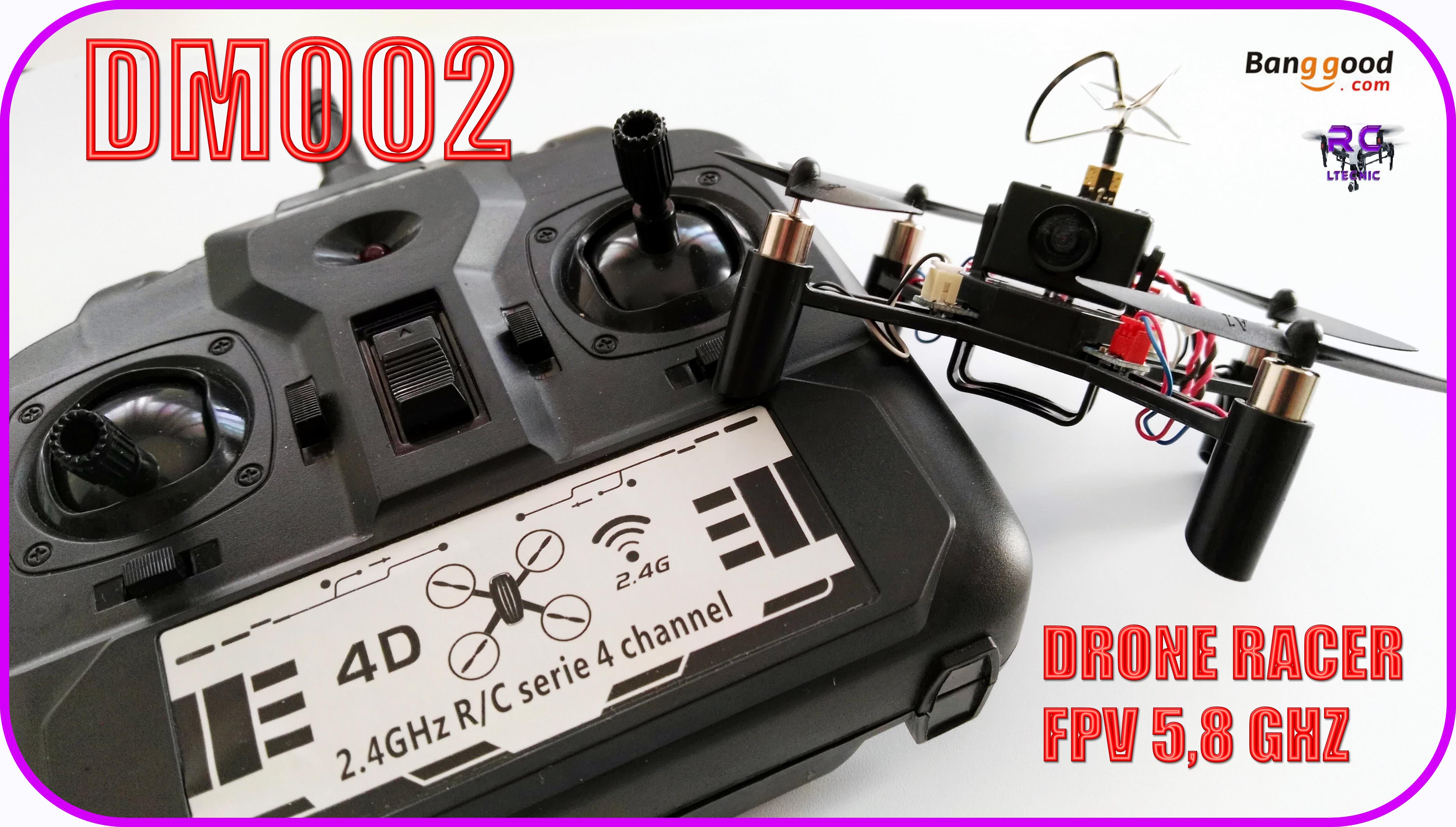 DM002 drone racer Fpv 5,8 ghz, un pequeño dronde de interior que nos permite incluso sacarle a exterior. Con un vuelo muy estable y de velocidad bastante buena, el cual se maneja muy bien desde su mando de control, el cual nos da un rango más que suficiente.