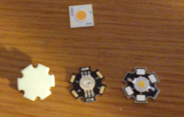 La fuente de luz es la bolita, las patitas anodo y catodo, pues bien debajo de la bolita hay pista de cobre, esa pista esta soldada tb a la placa, para que disipe, no se si con que solo toque cobre puede valer, lo probaré, pero sino, muy prontito, humo.