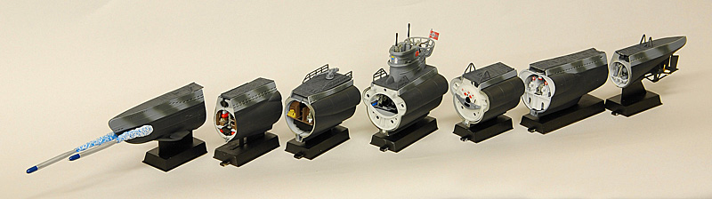 Si es lo que yo me imagino, es un U Boot VII C a 1/72 de la casa Revell, muy modificado (interiores y torpedos).