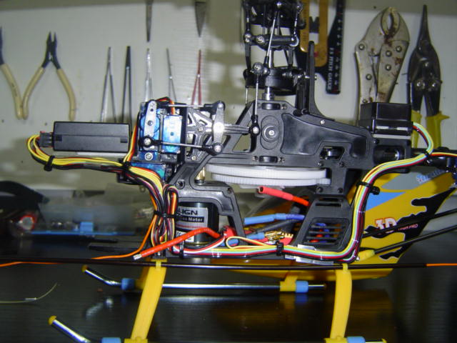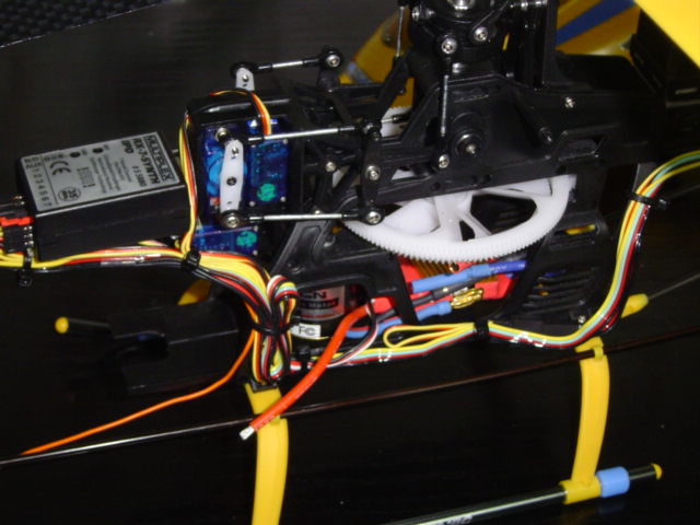 lo he resuelto montando una bandeja junto a los servos, para el receptor, dejando de esta forma espacio suficiente para el variador