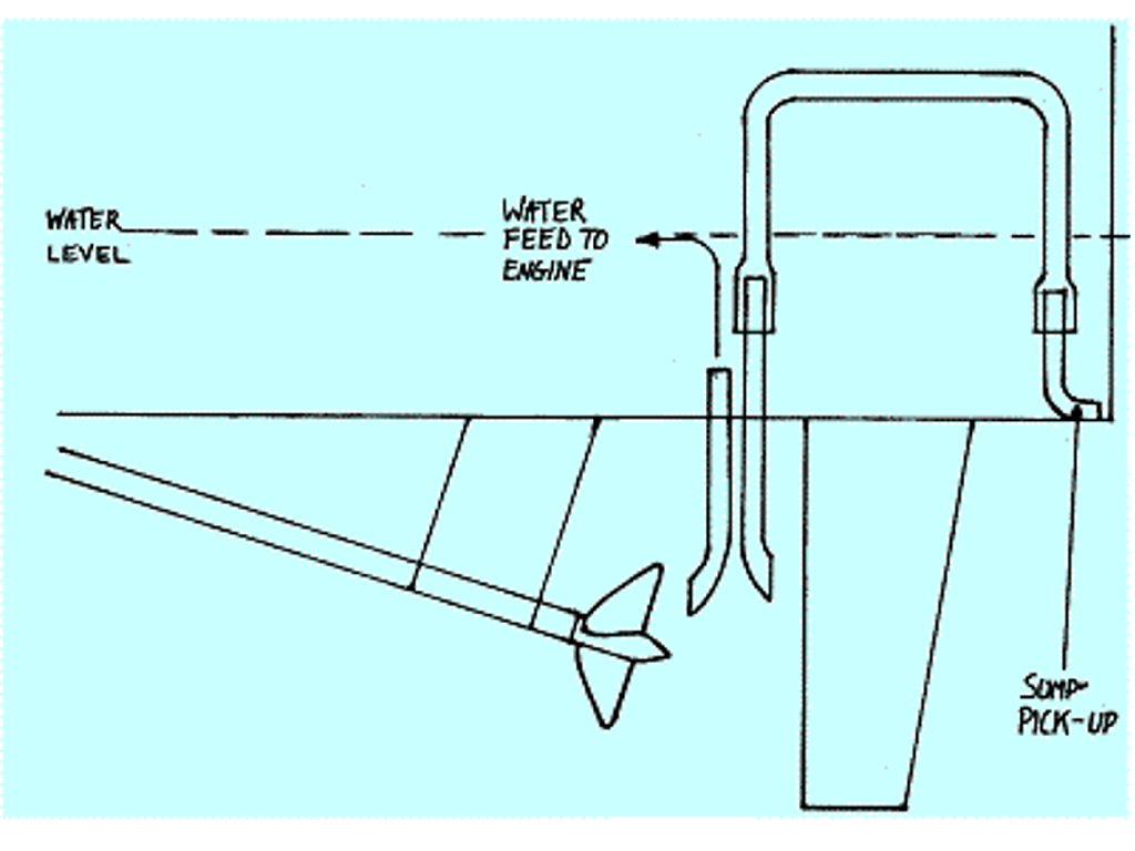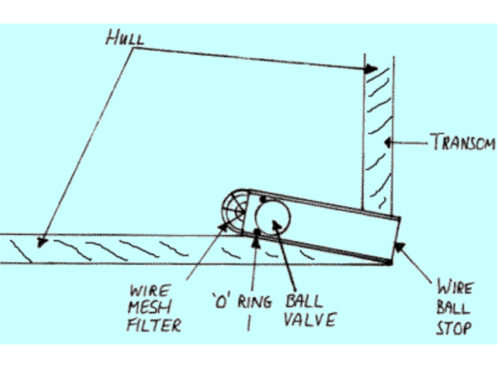yo he visto un sistema muy sencillo que es un tubo recto y a mitad de ese tubo el tubo hace una espiral, como un lupin en pistas de coches para que te hagas una idea, ese lupin hace que de fuera no entre agua por el tubo, pero el agua que entra dentro de la lancha con la misma presion que ejerce la velocidad el agua sale por ese tubo.