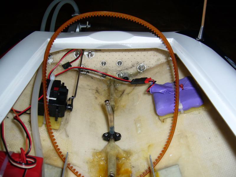 Bueno tu me diras si la he cagado o no pero puse al final la bolita y veremos,es una conversion de electrica a nitro ya le hice un deposito de 600 cl de rodaje el domingo pero las salpicaduras que desprende al navegar se meter por la tapa y quiero mas adelante poner cinta de neopreno al casco y con la presion que ejercen los imanes de neodino en vez de tornillos creo que sera suficiente para evitar la entrada de agua pero quiero asegurarme adjunto unas fotos,ahora a la espera de una helice de bronce,el equipo esta sin cubrir y es mi temor aunque el receptor tiene 3 globos nada menos y aislado con barniz por si las moscas,el silencioso se puso un poco negro ya que los tornillos no los aprete bien y perdia compresion,se puso por dentro tela,me faltan poner macarrones nuevos y filtro de combustible por lo demas no estoy arrepentido de la conversion ya que lo que queria era la misma velocidad y tiempo de navegacion.