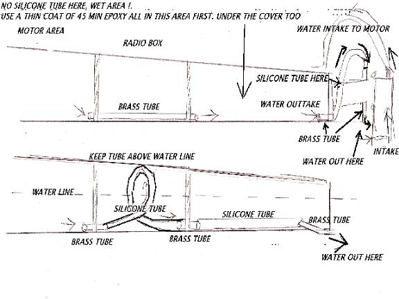 el sistema que yo te comento se asemeja al primero de los 2 dibujos que hay en el crokis que adjuntas,pero hay diferencias,o sea que en mi sistema el tubo de latón (yo usé tubo de carbono)a la vez que traspasa el compartimento de radio ha de traspasar tambien el espejo de manera que se quede raso a este por la parte de fuera del casco,lo pillas ahora? Luego simplemente pegar al espejo y por encima del tubo con loctite un retalito de la tela que te comenté de manera que obstruya totalmente el paso del agua en parado.la telita al mojarse con el agua se queda pegada al espejo de manera que obstruye la entrada de agua al casco de manera bastante estanca.Si tuviera una foto te la pondria pero eso no tengo