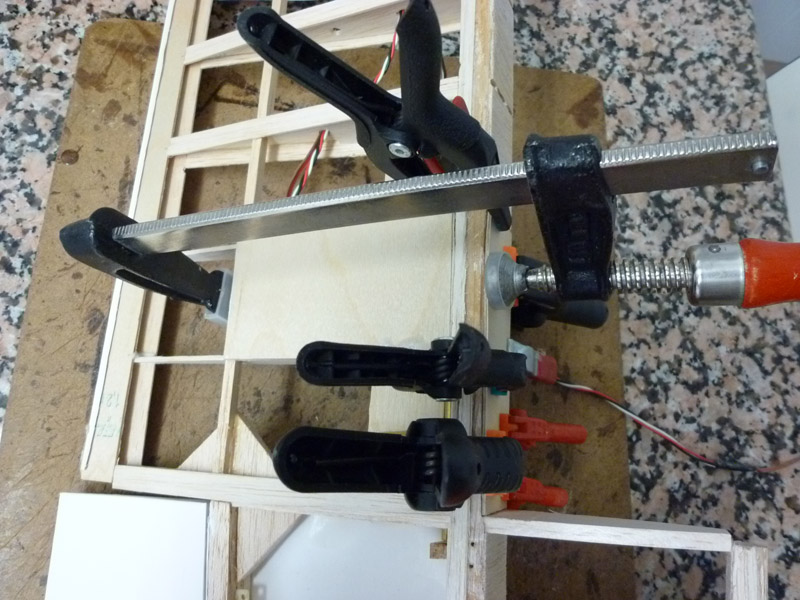 Primero decir a Sukoi que aunque no se aprecia en las fotos que he puesto, las piezas están convenientemente solapadas con contrachapado finlandés y en el larguero principal he incrustado una pieza de balsa entre las dos de pino y reforzado con contrachapado recibido con epoxi lento, en cuanto a resistencia pienso que no voy a tener problemas. ( al final veremos el peso de un ala respecto a la otra y si la diferencia es mucha equilibraré con plomo.)
