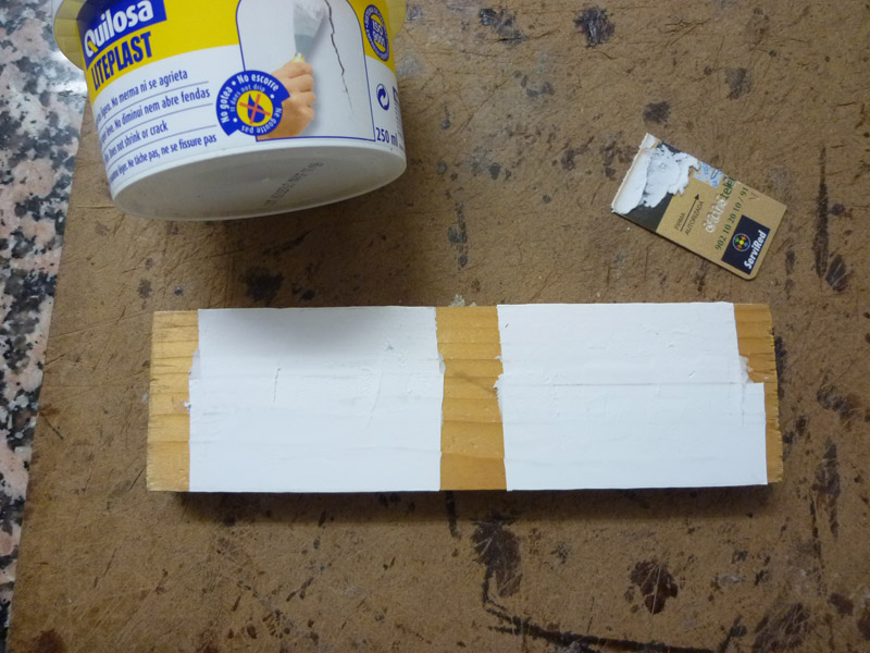 Para la finalización hice una prueba en una tabla de madera, por una parte con la propuesta de Javier y con otra con la de Miguelonete, en dicha prueba la solución del enmasillado de la junta, una vez lijado y pintado quedó muy bien, por lo que decidí ponerlo en práctica en el ala.