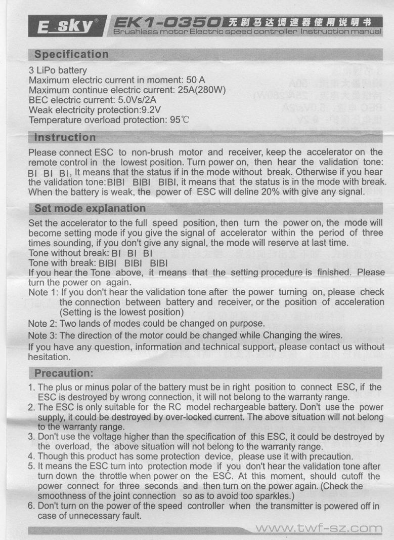 Sky , gracias por la molestia de poner la copia de las instrucciones del esc para los que no la tenemos.