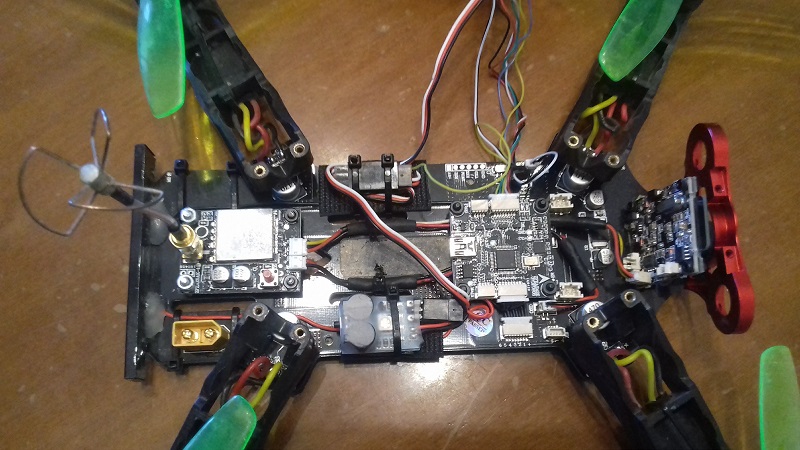 Bueno todos los que tenemos este dron sabemos que las baterias son un problema por su espacio ademas la antena Fpv esta muy expuesta así que he decidido poner el emisor fpv detrás y poder poner cualquier batería encima , así puedo poner incluso la de 2200 para disfrutar de un buen rato de vuelo, el espacio interior queda muy espacioso para poner todo dentro y tenerlo protegido ante las caídas ,con un fácil acceso para poder conectar la placa al pc solo me falta recibir las nuevas antenas con forma de padoda con un conector a 45 grados para alejar hacia atrás aun mas la antena y que emita una mejor señal.. por cierto le he quitado los leds delanteros para aligerar peso ya que para volar en fpv no sirven de nada..