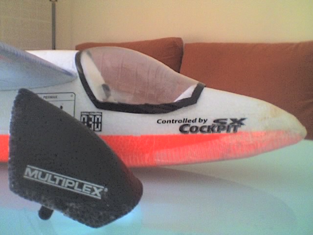 Yo creo que si le pones una tira estrecha de velcro delante (que cubra todo el frontal) y otras en los laterales e incluso en la parte de atrás de la cabina quedará todo bien sujeto y el aire no circulará por el interior manteniendo la forma aerodinámica del avión, lo cual hará que el aire circule por arriba y no por el interior del avion. En cualquier caso creo que lo mejor es probarlo así, si no te va bien te planteas lo de hacerle unos orificios para que circule el aire, aunque yo creo que no te hará falta. Eso sí, usa un velcro de buena calidad, que se adhiera bien entre las dos superficies.