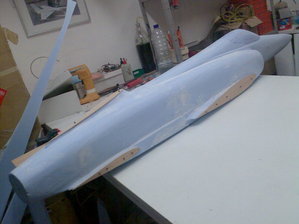 El modelo está hecho a molde perdido. El fuselaje está casi listo, a falta de instalar las fijaciones de las ballonetas y de reforzar las cuadernas que las soportan.