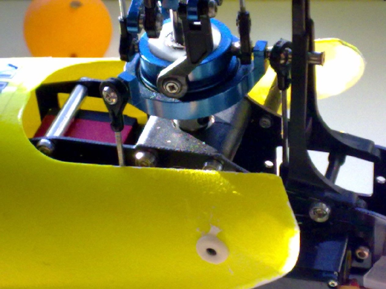 Ahora creo que todos mis males vienen por el mismo sitio y es lo que no deja que el heli vaya perfecto del todo. Abajo le he hecho una foto de la pieza que creo que debo cambiar porque tiene olguras, de hecho a muy bajas revoluciones el eje central hace vibrar todo el heli y no debería ya que el eje es nuevo y no le he dado ni un susto desde entonces. Es justo la pieza del fuselaje donde va insertado el eje central y que parece de plástico. Donde la puedo comprar?? esa y otra donde va atornillado el motor que también es de plástico y dada la olgura del otro eje casi la partió.